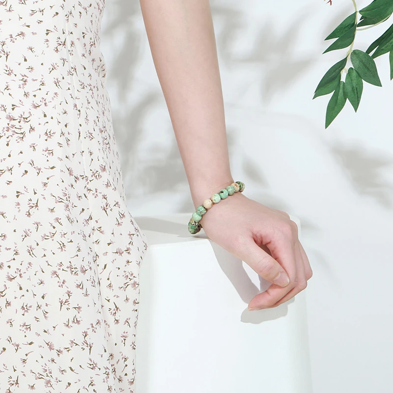 Браслет JD Phoenix с круглыми бусинами из натурального камня, бирюзовый эластичный браслет с подвесками для женщин и мужчин, подарки ручной работы 7-7,5 дюйма
