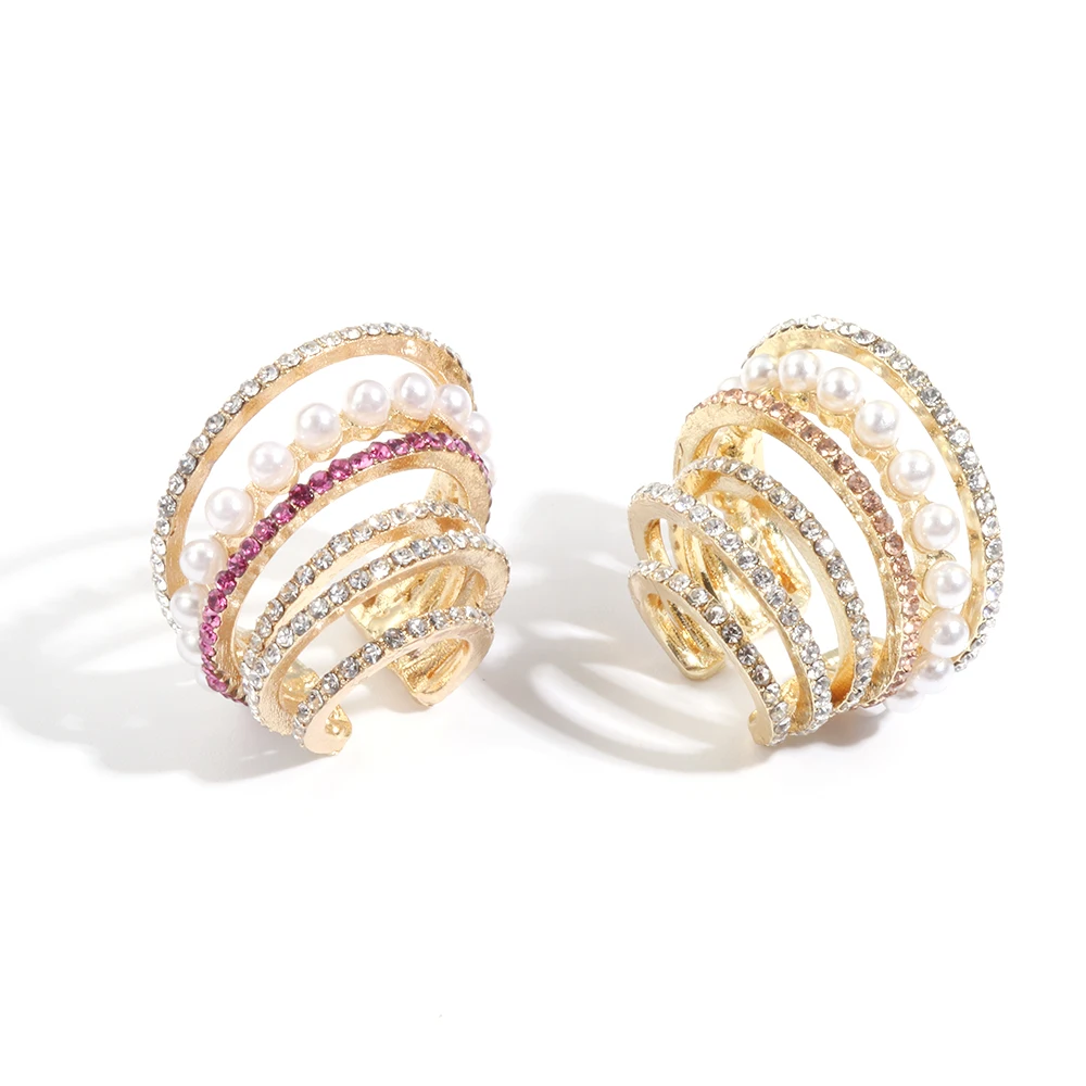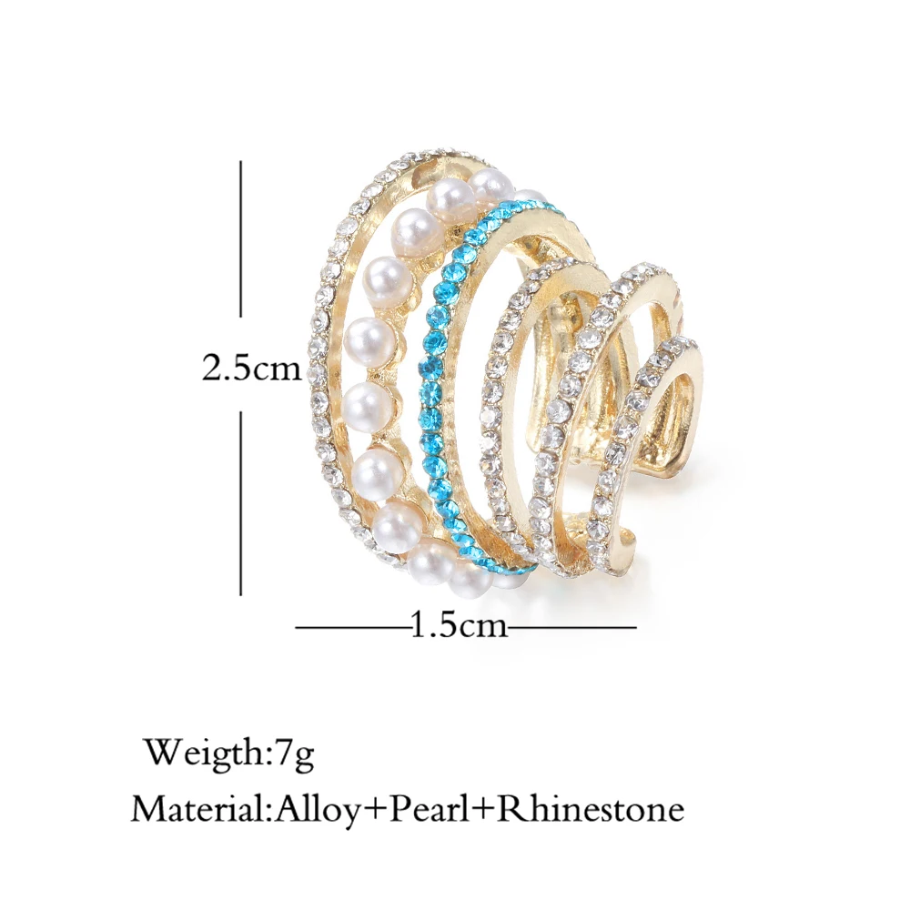 Женские Модные штабелируемые широкие серьги-наручники, жемчужные стразы, клипсы, серьги-манжеты без пирсинга, ювелирные изделия