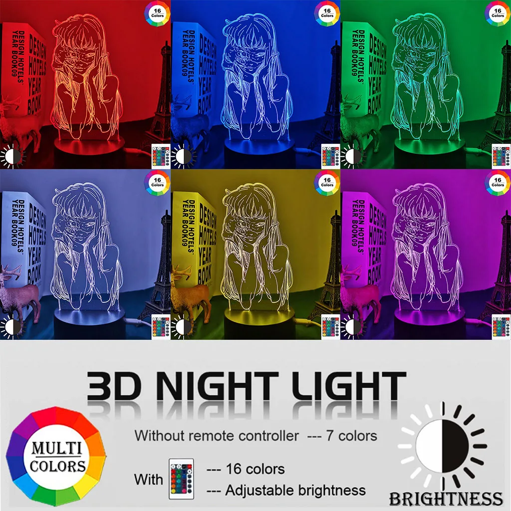 Аниме 3d лампа Джунджи Ito коллекция чтомые для Украшения в спальню Ночной светильник подарок на день рождения Manga Джунджи Ito коллекция светодиодный ночной Светильник