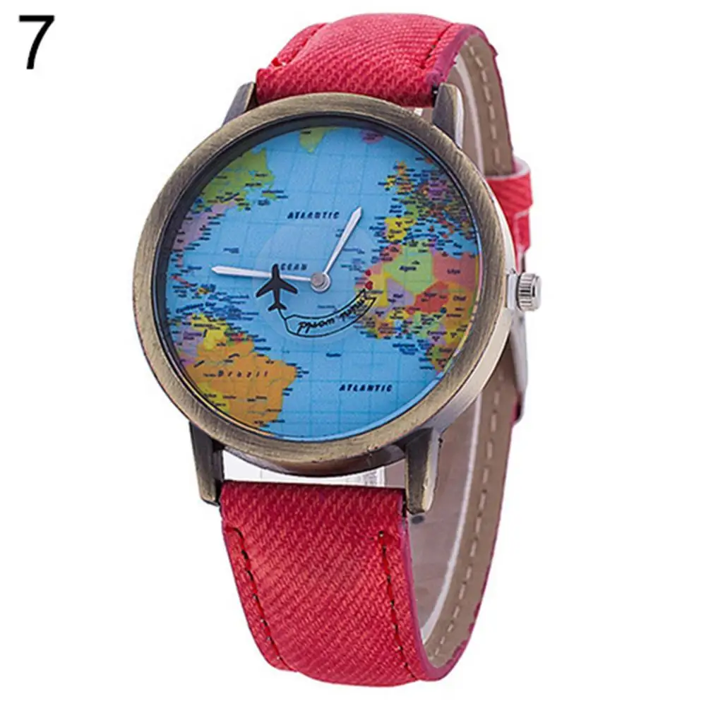 Новинка 2021, модные женские Аналоговые кварцевые наручные часы с картой мира и ремешком из джинсовой ткани для студентов
