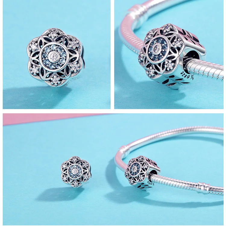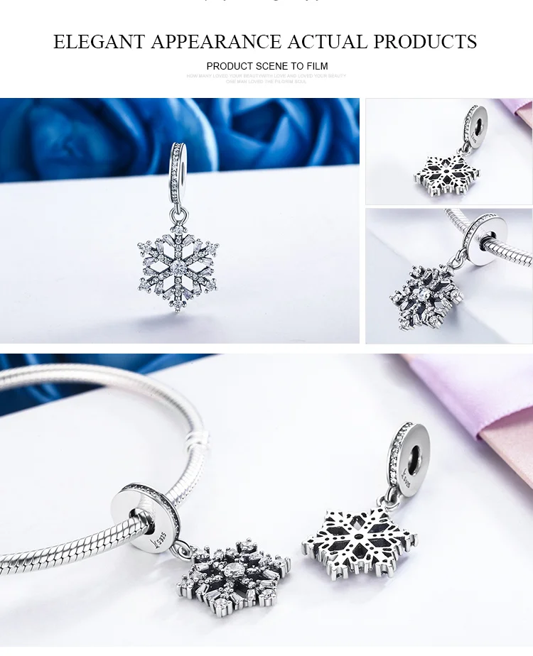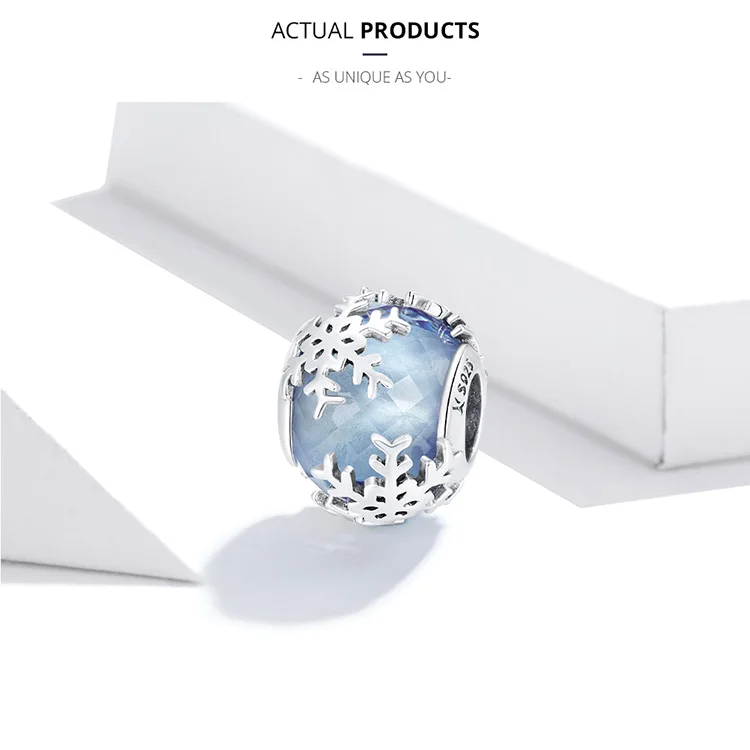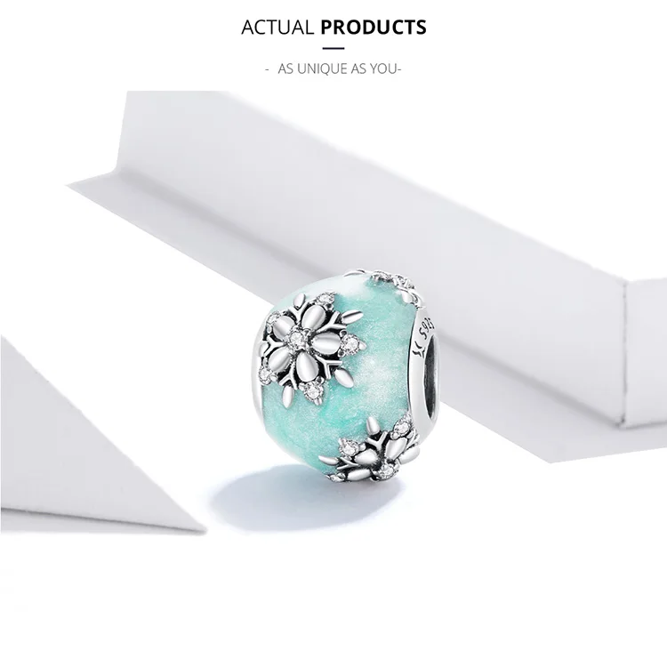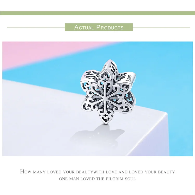Бусина-подвеска из серебра 100% пробы, в форме снежинки, 925