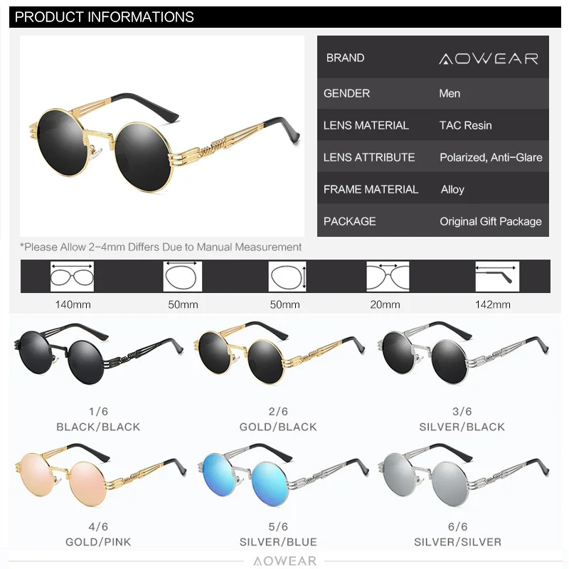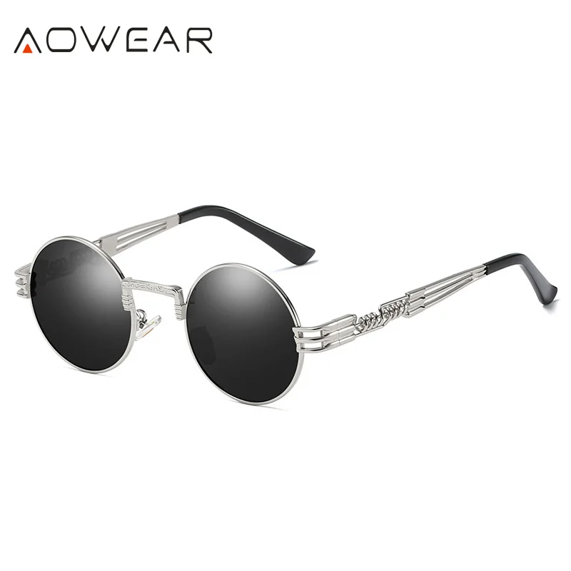 AOWEAR Винтаж солнцезащитные очки в стиле стимпанк, Для женщин поляризационные Готический стимпанк Солнцезащитные очки женские круглые оттенки солнцезащитные очки с Чехол
