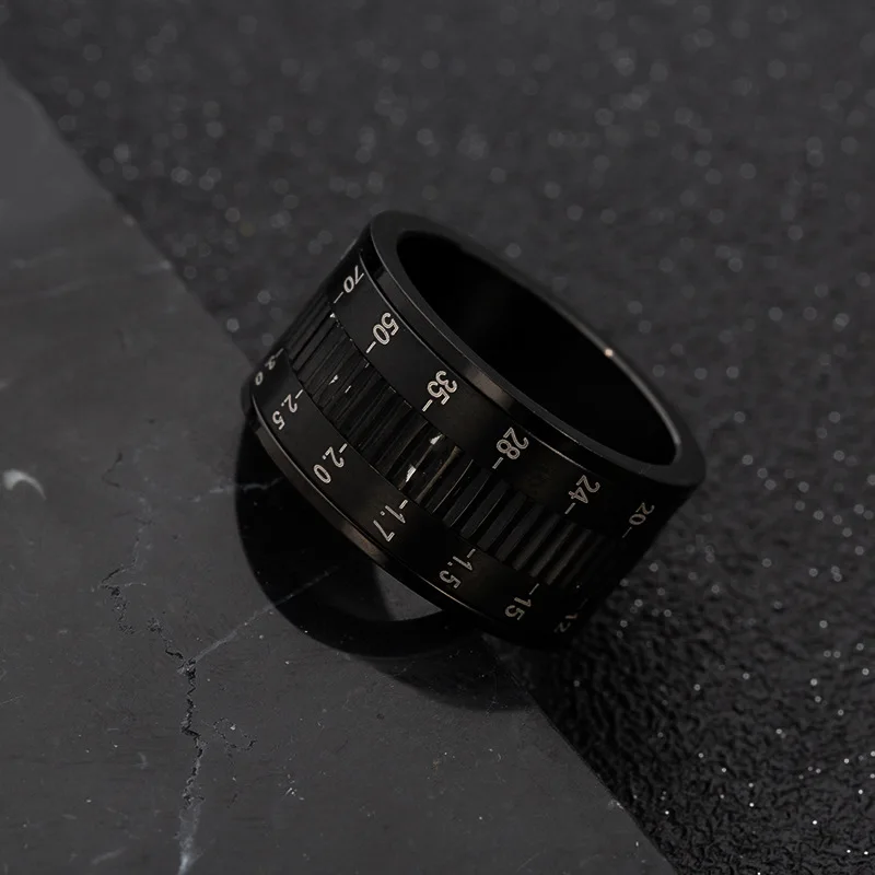 Мужское кольцо из титановой стали с вращающимся объективом 12 мм