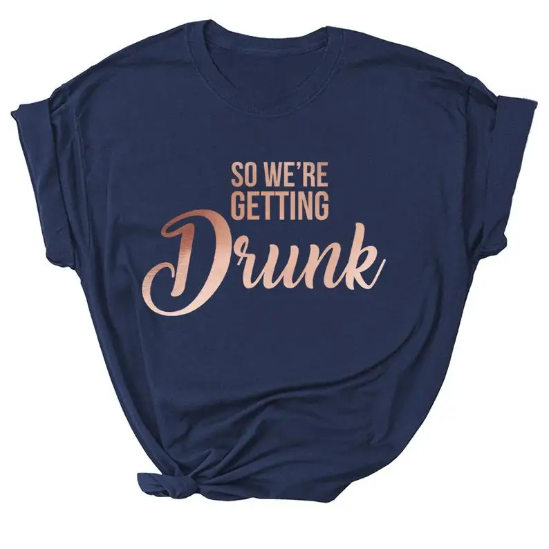 Im брак напились военно-морской флот цвета розового золота девичник вечерние рубашки для мальчиков хлопковая рубашка с круглым вырезом Повседневное короткий рукав женская обувь