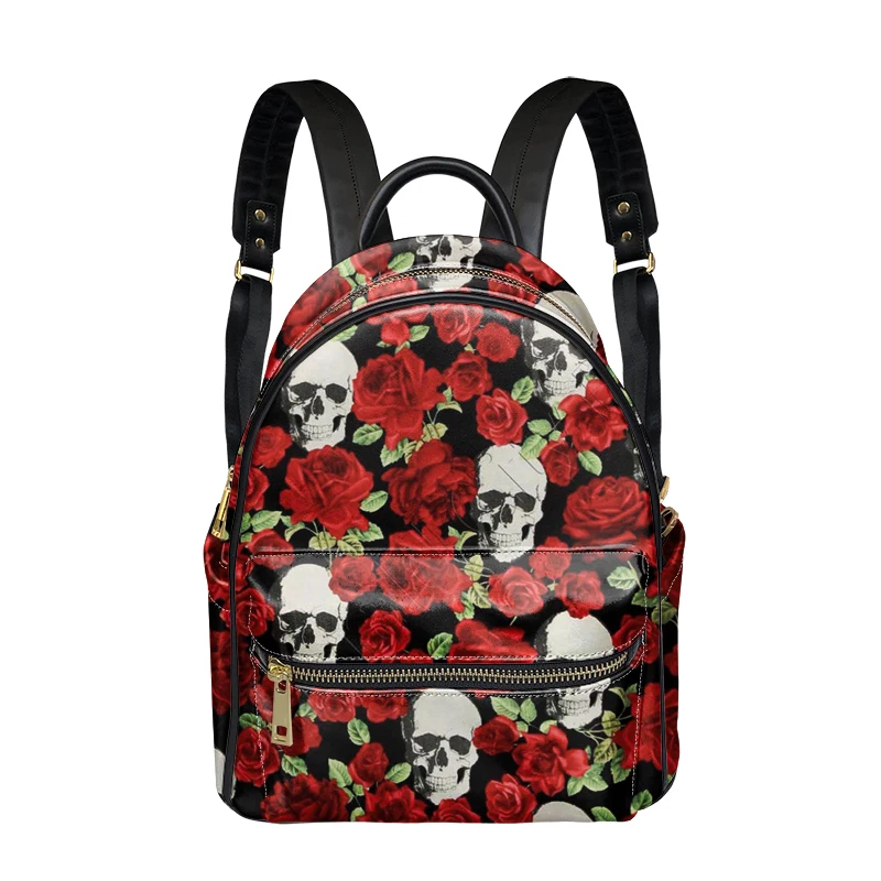 Рюкзак женский кожаный на молнии, с принтом розы и черепа, готическ...