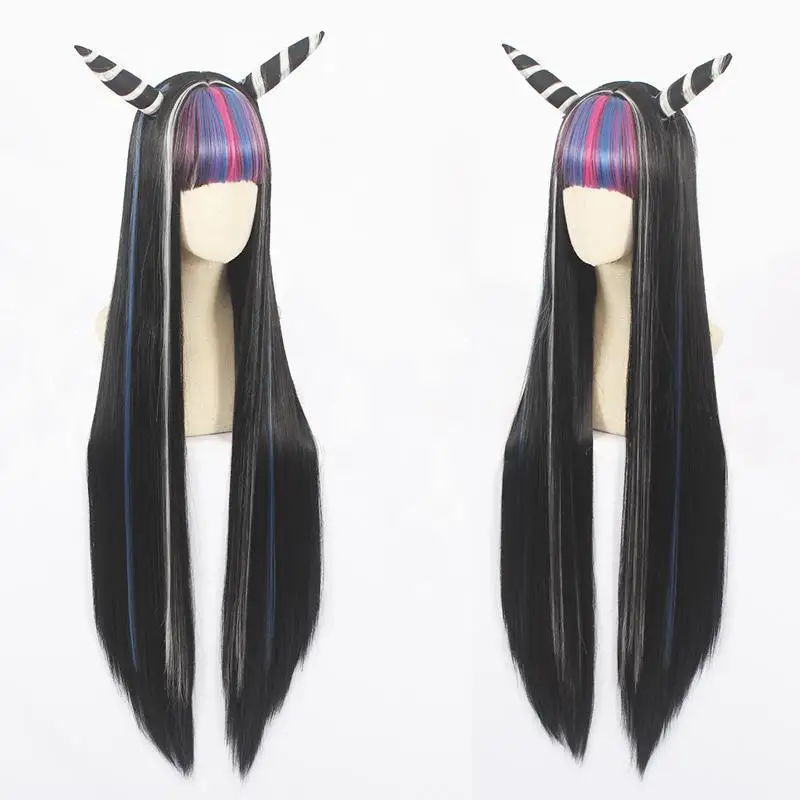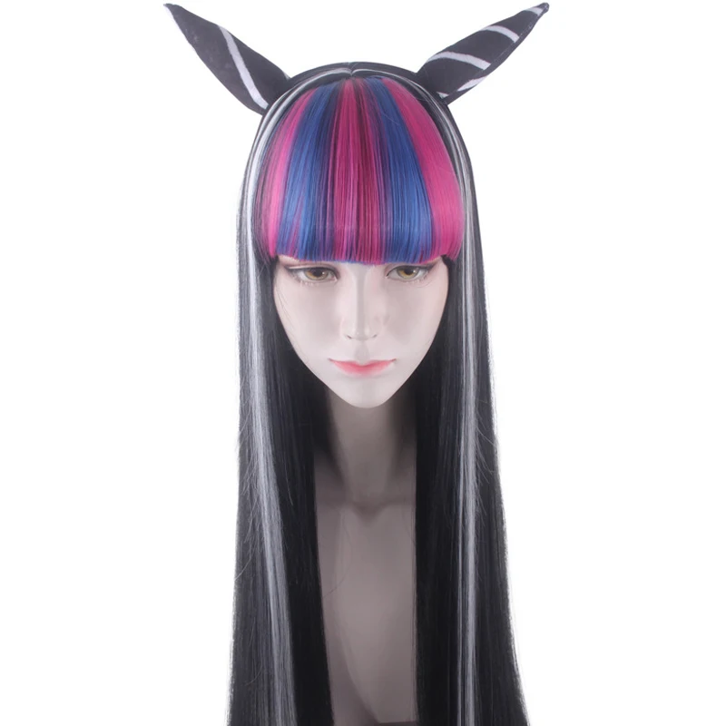 Женский парик для косплея Ибуки из аниме данганронпа, длинный парик с красочными дьявольскими рогами, для вечеринки на Хэллоуин, карнавала