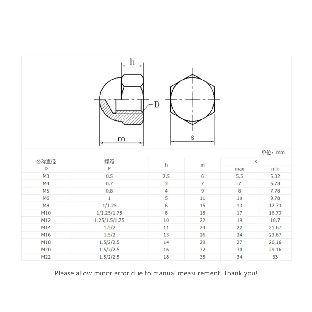Описание товара:Название продукта: колпачок гайкиОбработка поверхности: черный оцинкованныйМатериал: черная сталь класса 4,8Стандарт: GB923Размеры: M3 M4 M5 M6 M8 M10 M12Данные только для справки, пожалуйста, имейте в виду!Посылка включает в себя:Кепки гайки * 5/20 шт./упак.Отображение деталей (только для справки, точная информация, пожалуйста, свяжитесь с нами):