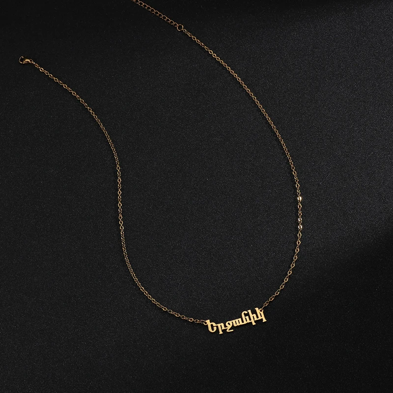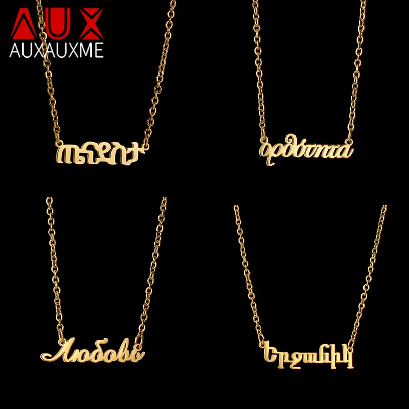 Ожерелье Auxauxme из нержавеющей стали для мужчин и женщин, чокер с надписью на русском, арабском, греческом языках, на заказ, Подарочная бижутерия