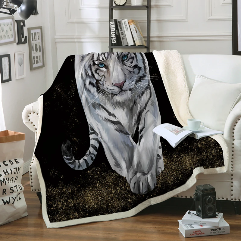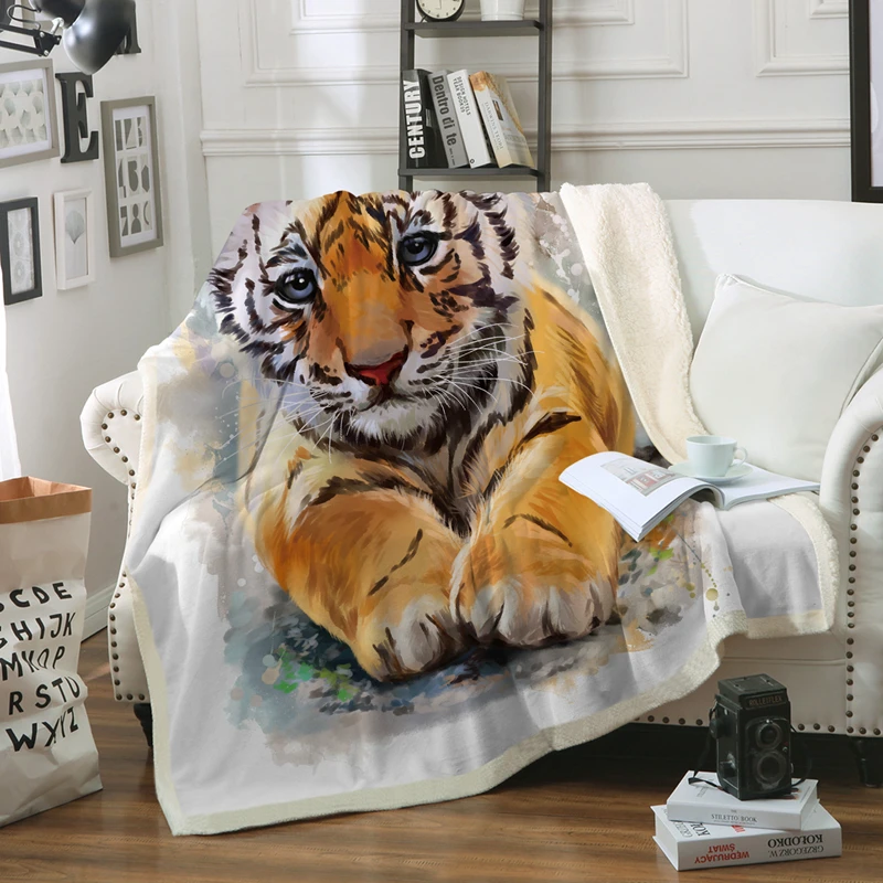 Плюшевое одеяло с 3D принтом тигра, шерпа, флисовое покрывало, одея...