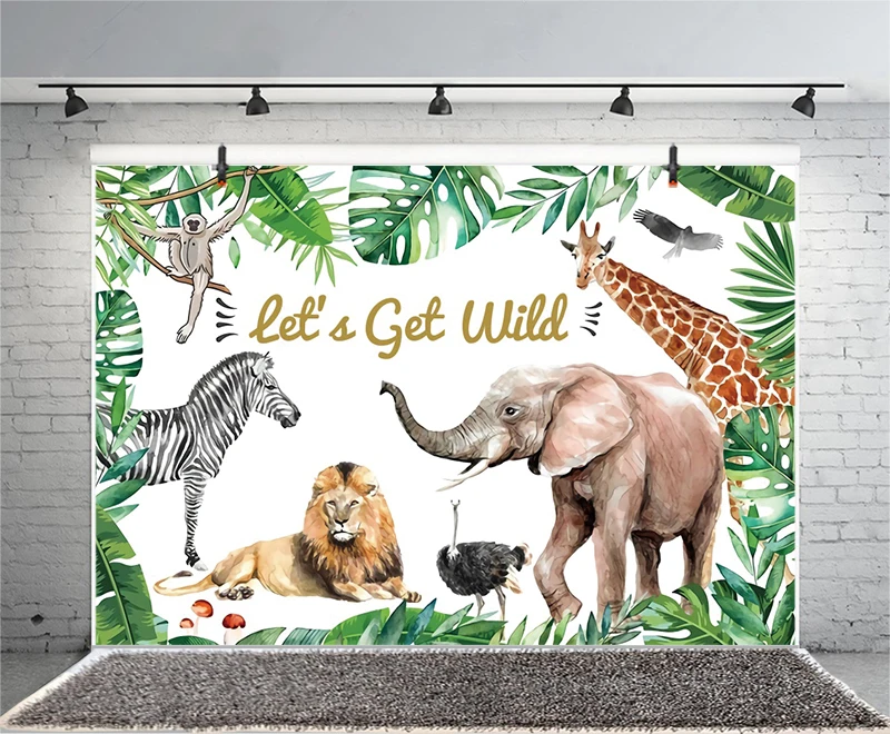 Джунгли сафари животные фон слон Лев Жираф детский душ день рождени...