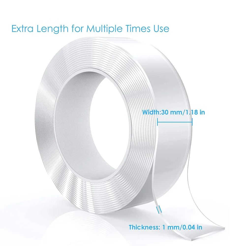 【Легко использовать 】-Размер: длина 1 м (3,28 фута)/ 2 м/3 м (9,85 фута) / 5 м (16,5 фута), ширина 20 мм/30 мм (1,18 дюйма), толщина 1 мм (0039 дюйма) /. Эта двухсторонняя лента прилипает практически к любому с гладкой поверхностью и легко удаляется, не повреждая поверхность, так что вы можете приклеивать что-нибудь в любом месте.