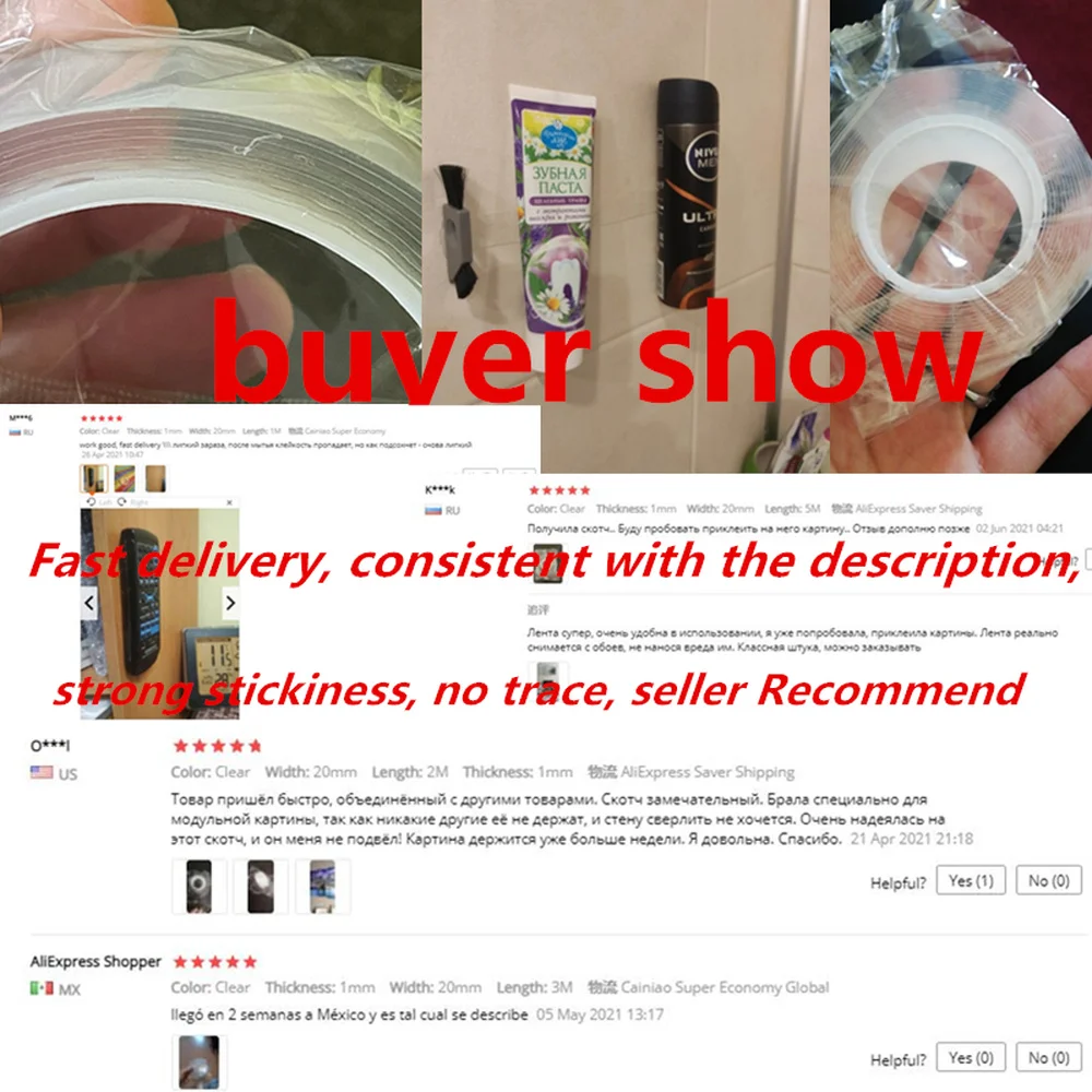 【Многофункциональная лента 】-изготовлен из новейший акриловый-гелевый материал, наша Прозрачная Клейкая Лента невероятно прочная, прочная, съемная, бесследная и не оставляет следов. Эта супер клейкая лента отлично работает при температурах.