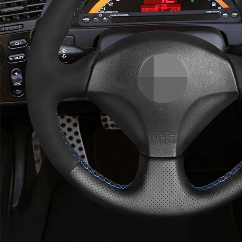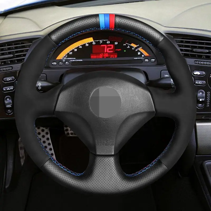 Рука Шить черная замша чехол рулевого колеса автомобиля для Honda S...