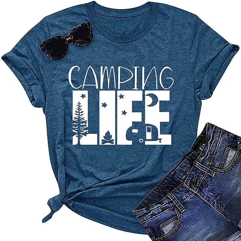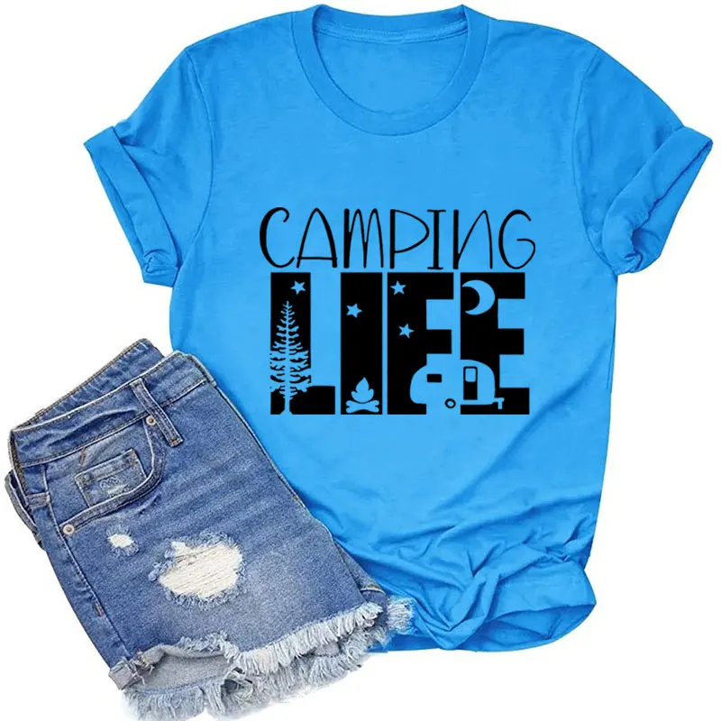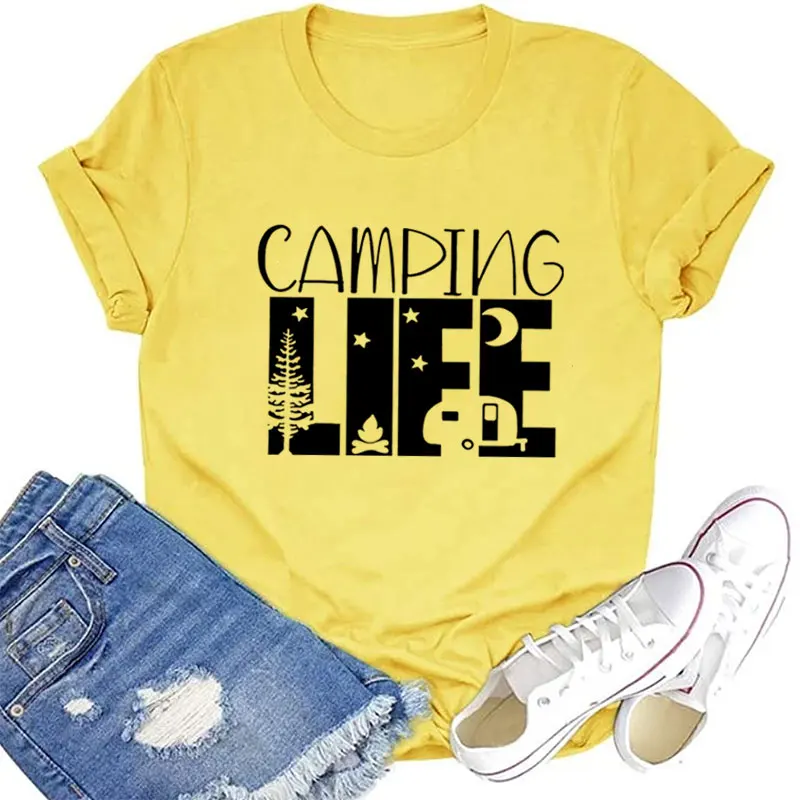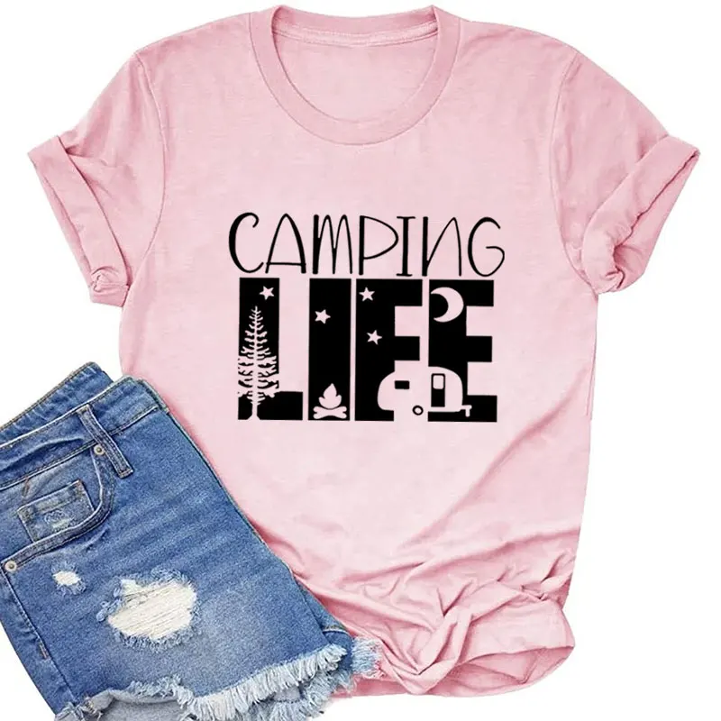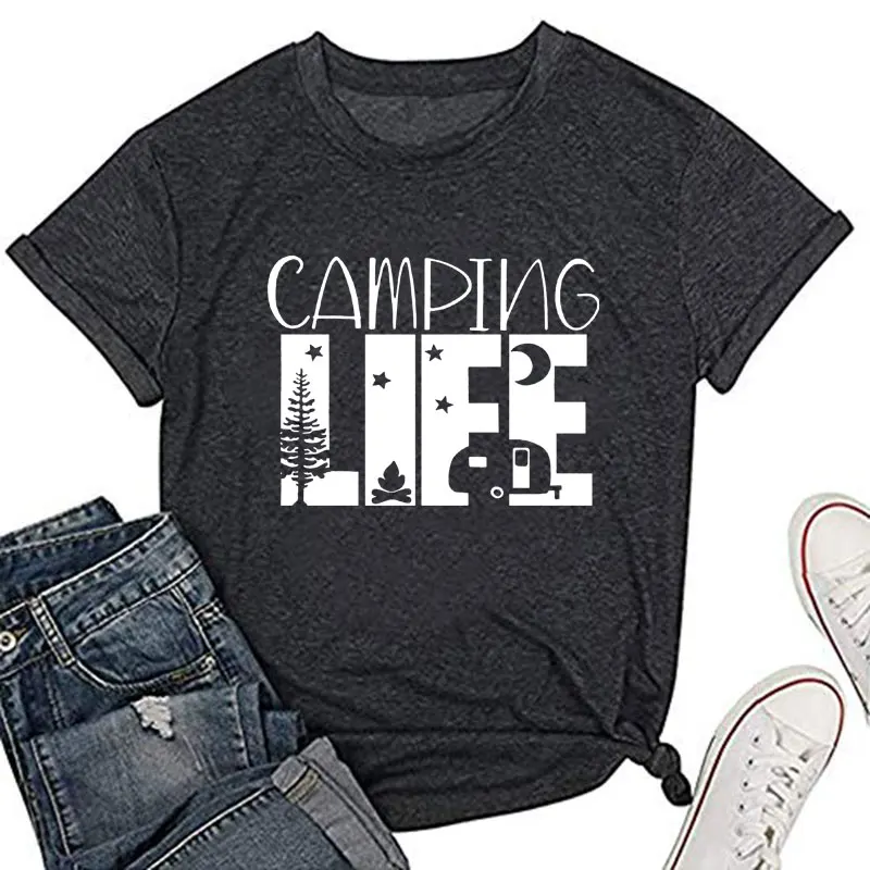 Женская футболка, кавайные летние походные рубашки для кемпинга, женские рубашки, счастливые кемперские повседневные футболки с надписью