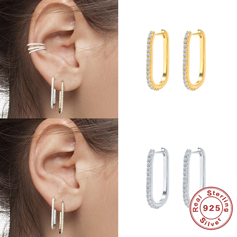 Серьги женские U-образные из серебра 100% пробы, 925 пробы