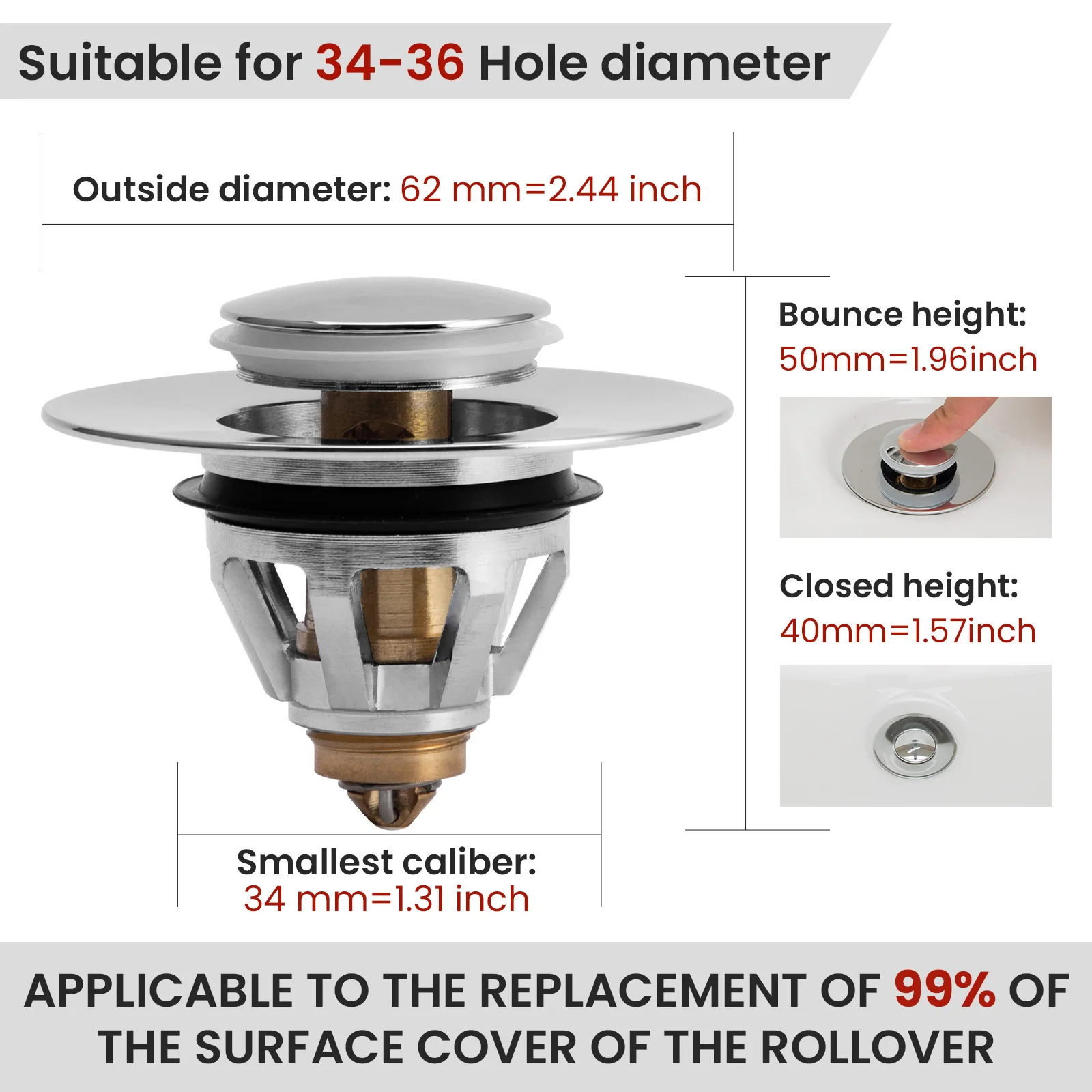 Особенности:【 Встроенный STRAINER】В отличие от обычного стока с нажимной кнопкой, эта Стопорная пробка имеет сетчатый фильтр с защитой от засорения внутри, который аккуратно собирает волоски и предотвращает слив от засорения, материал, который не попадет в слив, такие как ювелирные изделия, кольца, грязь и так далее.