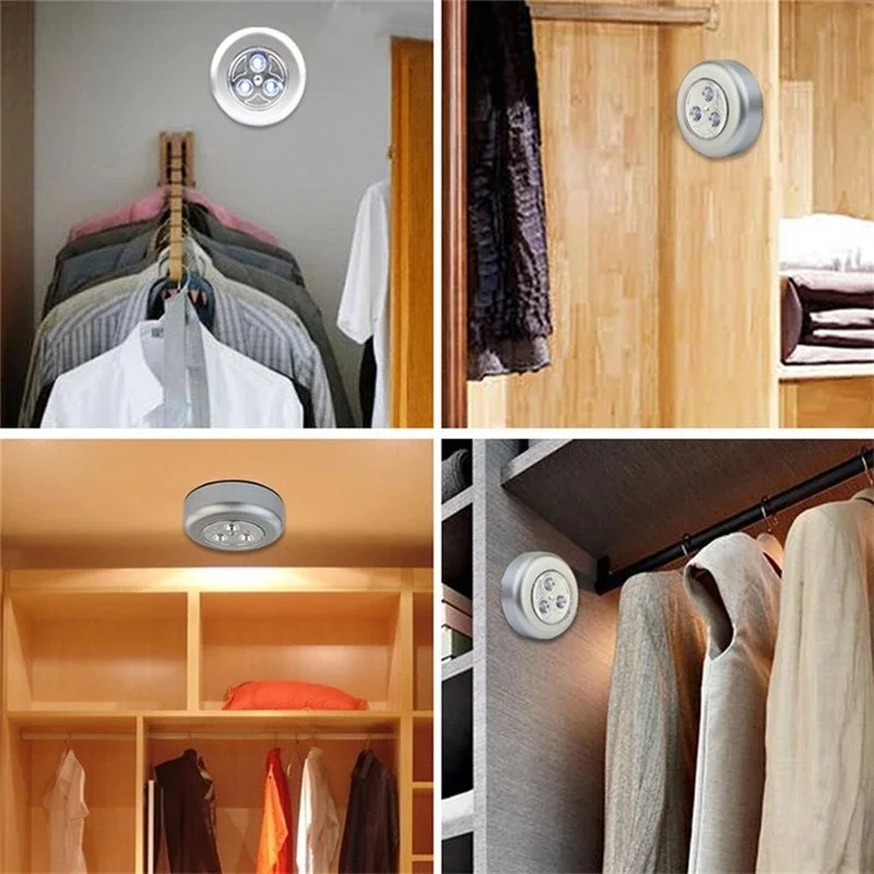 3Led многоцветные Шкаф Кабинет лампа Батарея приведенный в действие Беспроводной Ночной светильник Стик Нажмите пуш-ап безопасности Кухня Спальня Шкаф Настенный декор