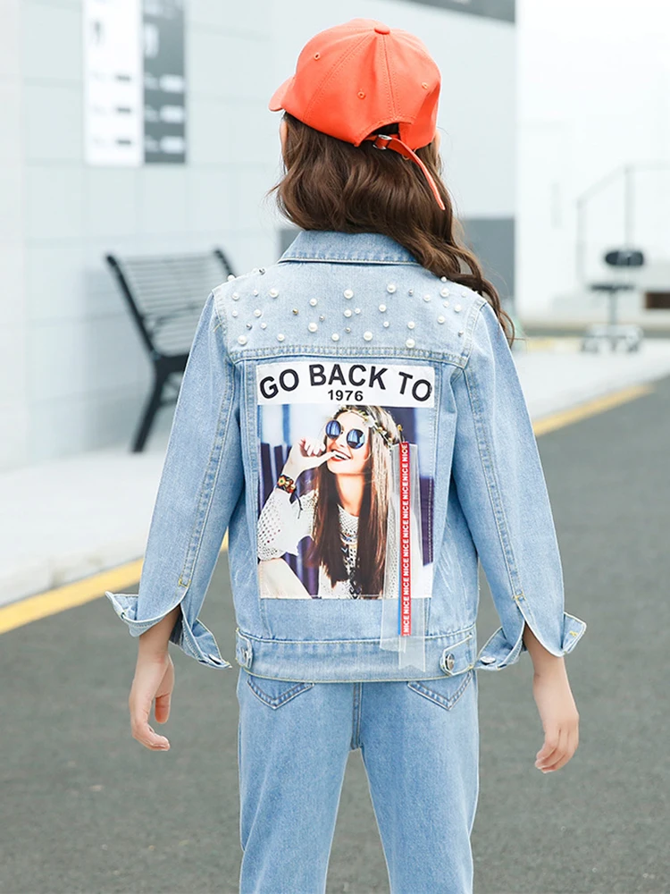 Осенняя джинсовая куртка для девочек, пальто для девочек, детская в...