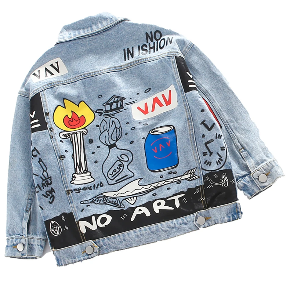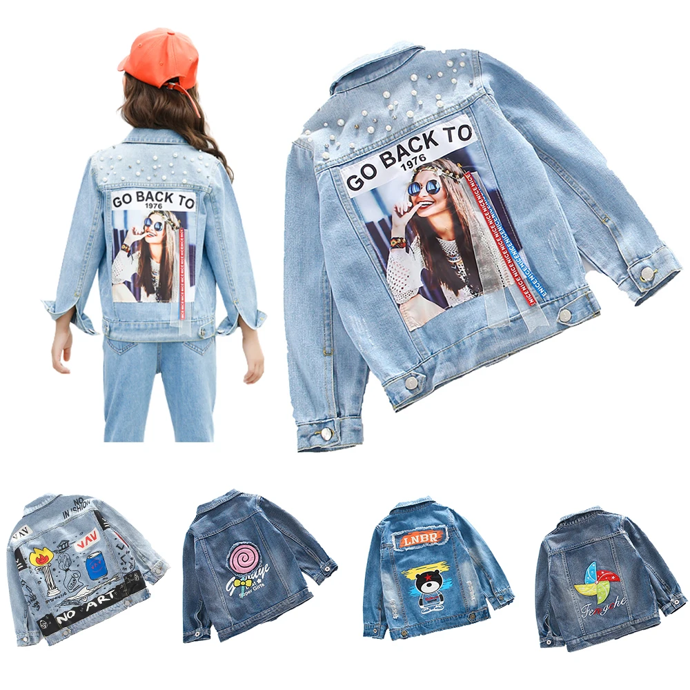 Весенне-Осенняя детская куртка для девочек, детские джинсовые пальто с рваными дырками Джинсовая Верхняя одежда для мальчиков и девочек, костюм для детей 6, 8, 10, 12 лет