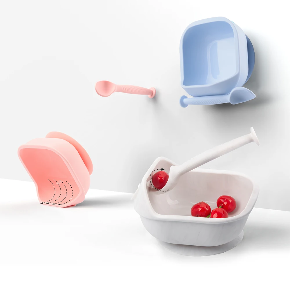 Многофункциональная силиконовая чаша в основном используется для кормления детей. Миска и ложка плотно адсорбируются и их нелегко сбивать. Стоя, чтобы высушить чашу. Миска и ложка блокируются для удобного хранения. Квадратные углы, чтобы избежать проливания супа. Изогнутая конструкция внутреннего угла уменьшает остатки и позволяет ребенку есть больше. Перевернутый треугольный плоский дизайн и высокая задняя часть ложки легко питаться и защищать безопасность ребенка. Нескользящая Текстура позволяет легко держать ложку. Легко чистить. Каждый дизайн эргономичный, чтобы помочь детям вырасти