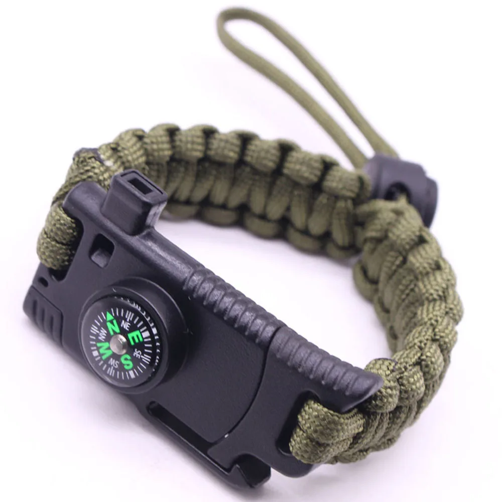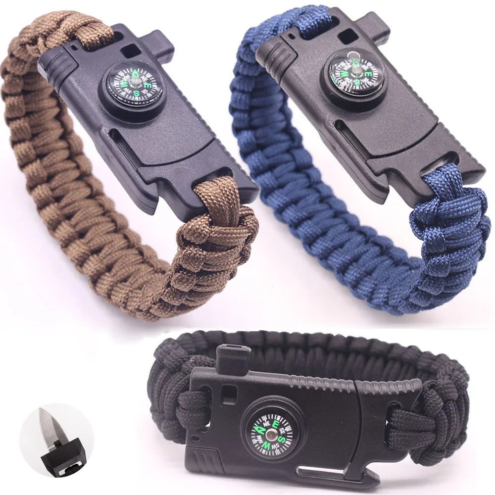 Браслет из нержавеющей стали с ножом для мужчин и женщин, многофункциональный Плетеный Паракорд, походные спасательные веревочные браслеты с компасом и свистком