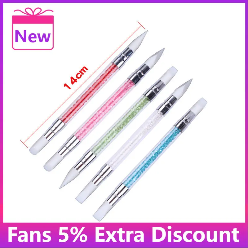 Двухсторонняя Силиконовая ручка для дизайна ногтей Горячая Распродажа с двумя способами, 3D резьба, сделай сам, блестящая пудра, жидкая маникюрная точечная кисть