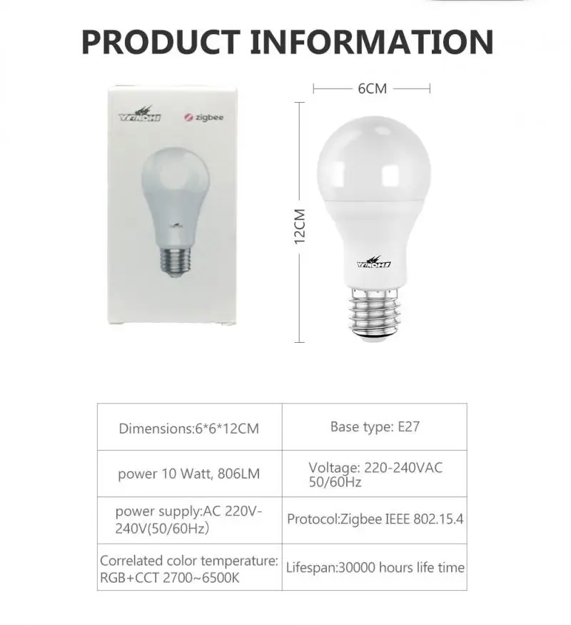 2. Управление приложением: Управление умной лампочкой (доступны групповое управление) через приложение Hue/smart Life непосредственно из любой точки после подключения устройства к шлюзу Zigbee.