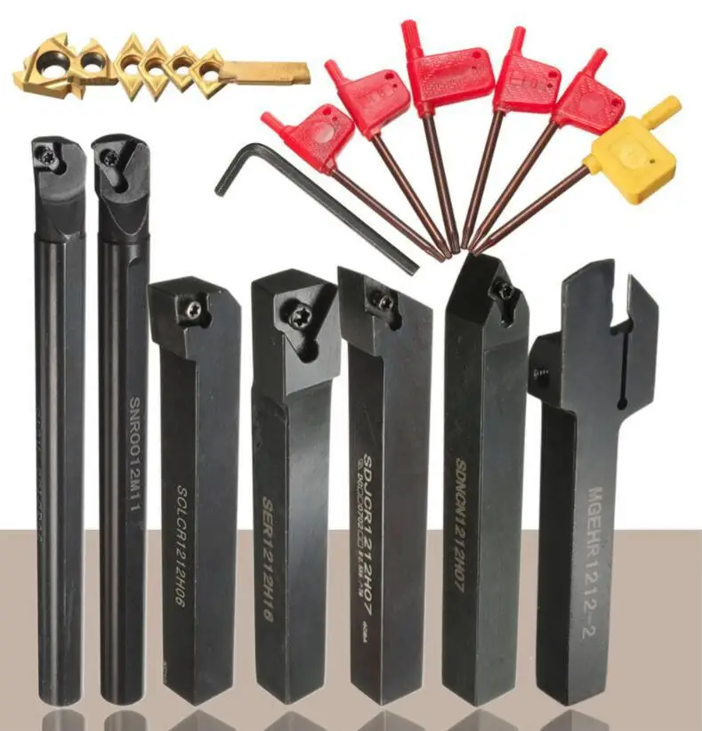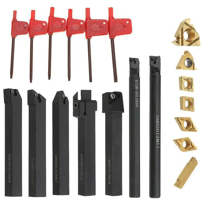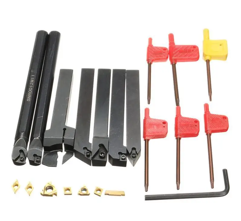 Посылка включает в себя:7 * держатели токарных инструментов7 * T8 ключи7 * вставки