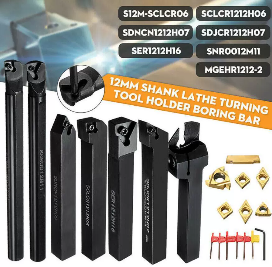 Набор держателей для токарного станка, комплект из 7 твердосплавных насадок с хвостовиком 12 мм, 45HRC, для получистовой и отделочной обработки