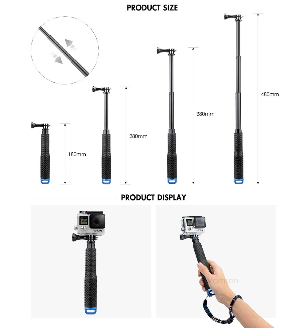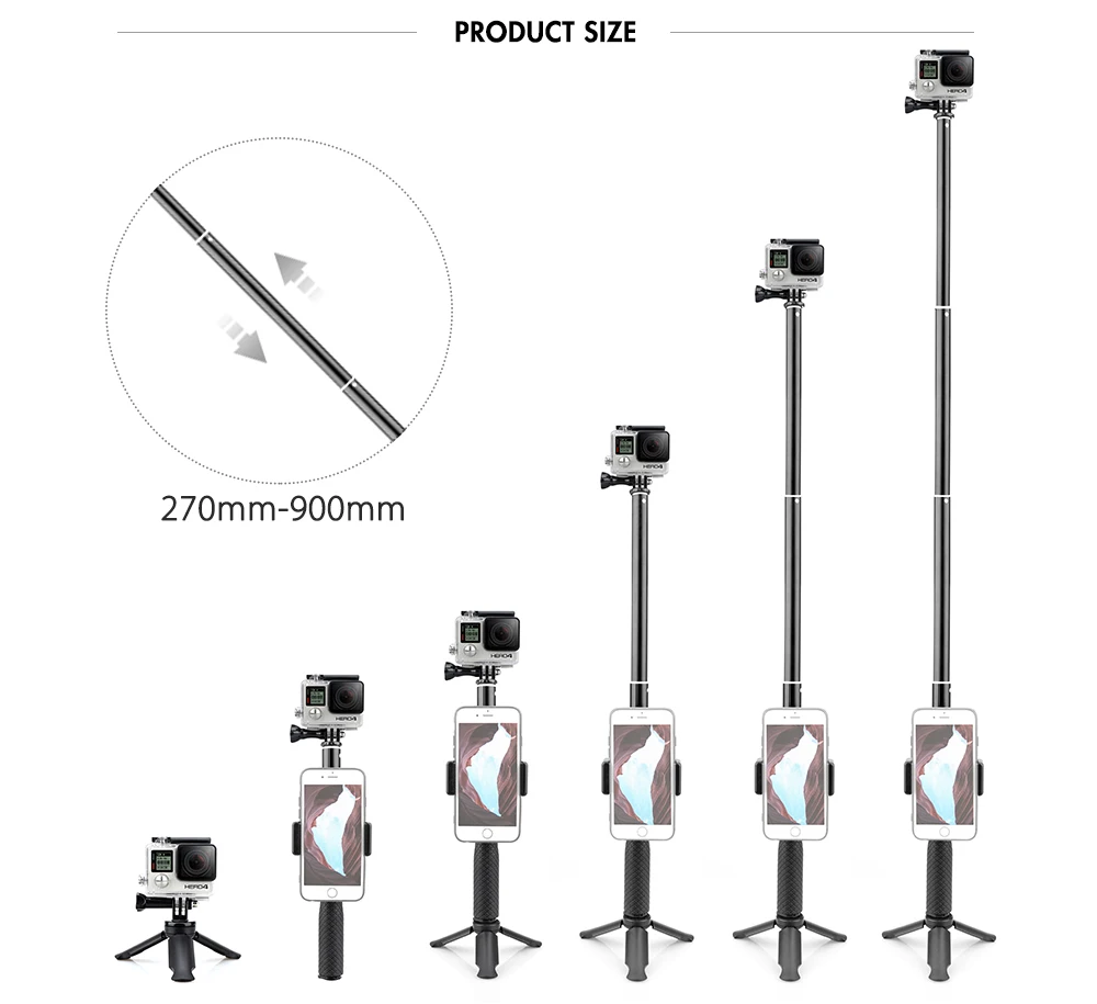 1. Скрытый штатив, может использоваться как селфи-палка или как настольный штатив.2. Держатель телефона может вращаться на 360 градусов.3. Мобильные телефоны универсальны и имеют более широкий спектр применения.4. Длина: 190 мм-1040 мм5. Пульт дистанционного управления Bluetooth совместим только с мобильными телефонами. (не содержит батарей.)