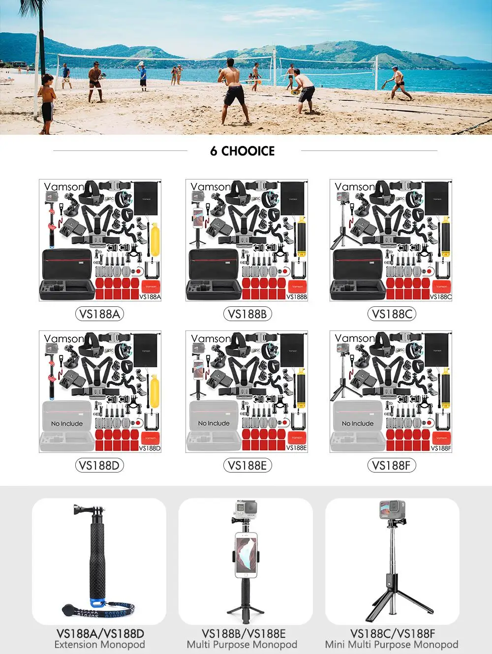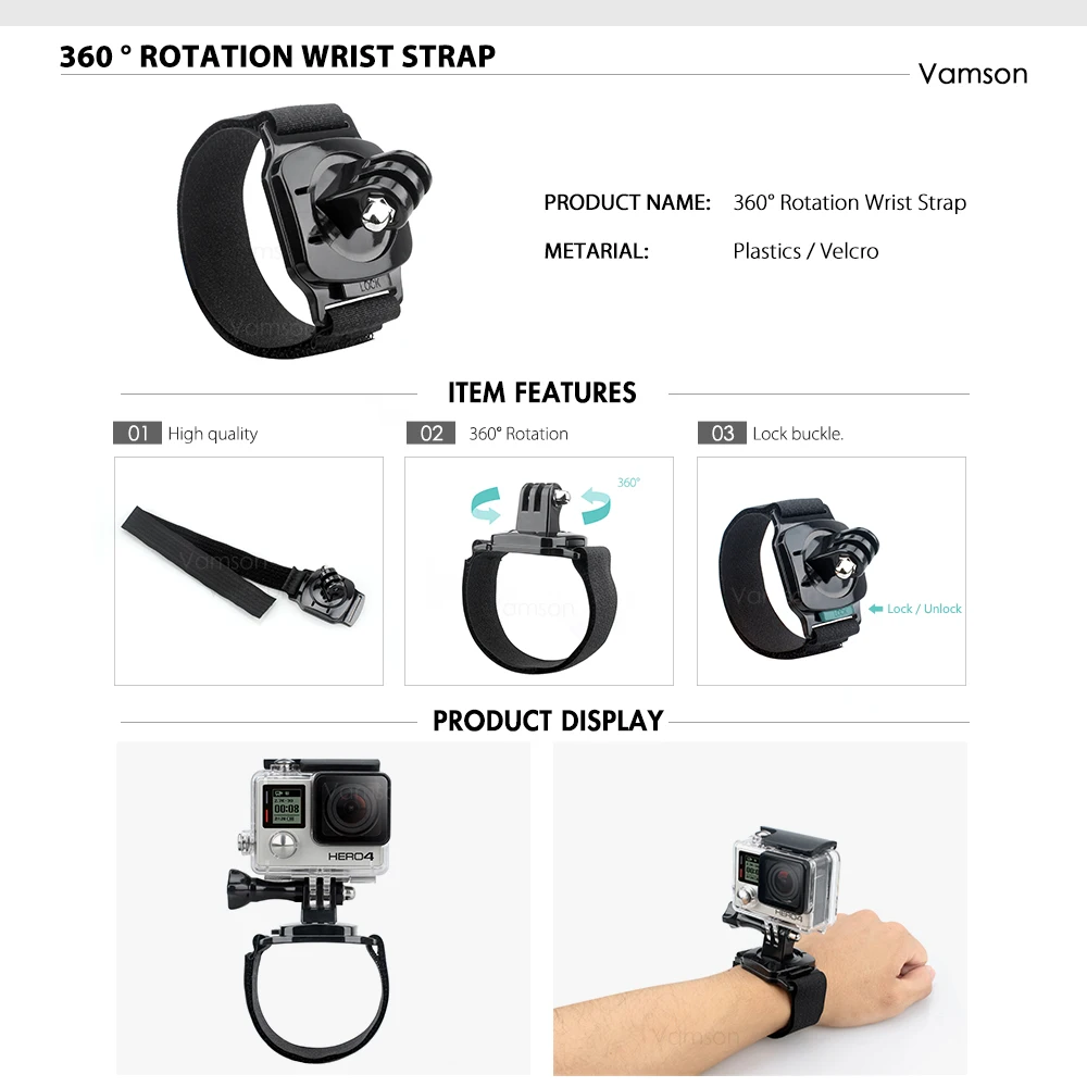 Большой посылка, Универсальный штатив-Монопод Vamson, нагрудный ремень, шлем, ремень для Xiaoyi Yi 4k, для телефона, для GoPro 10 9 8 7 6 5 VS188