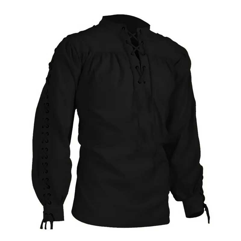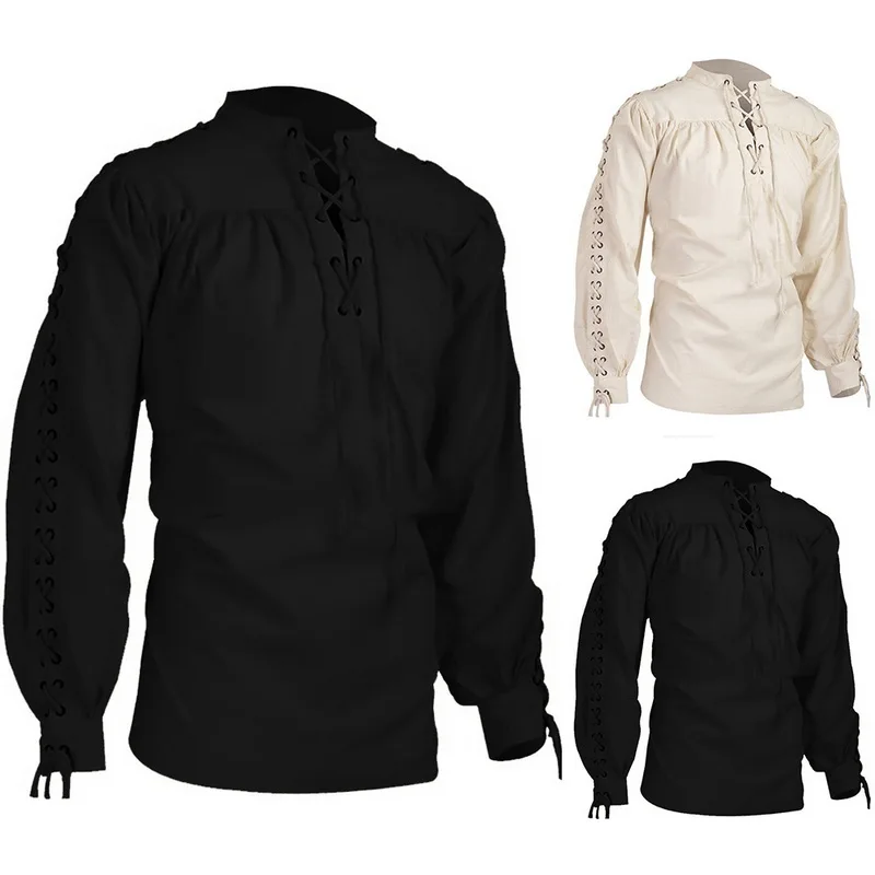 Dihope Мужская блузка средневековая Пиратская рубашка викингов эпохи Возрождения шнуровка Хэллоуин наемник шотландский якобит гилли топы новинка