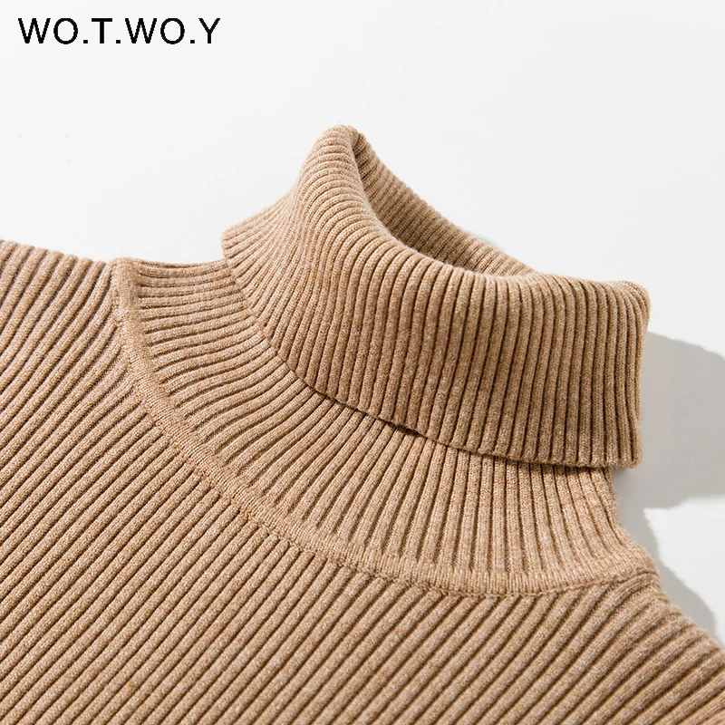 Женский однотонный вязаный свитер с высоким воротом WOTWOY, черный и белый цвета, Осень-зима, 2021