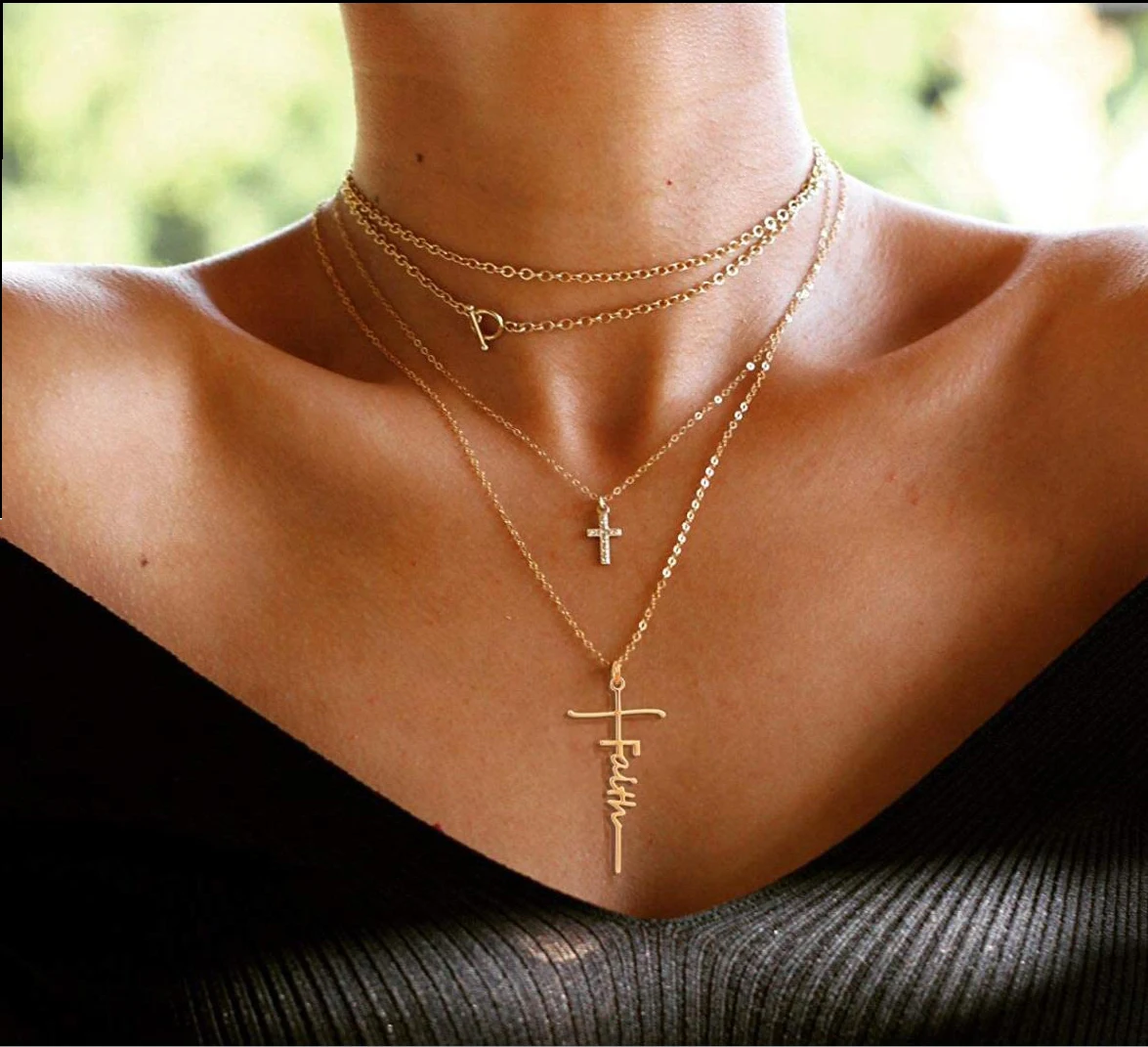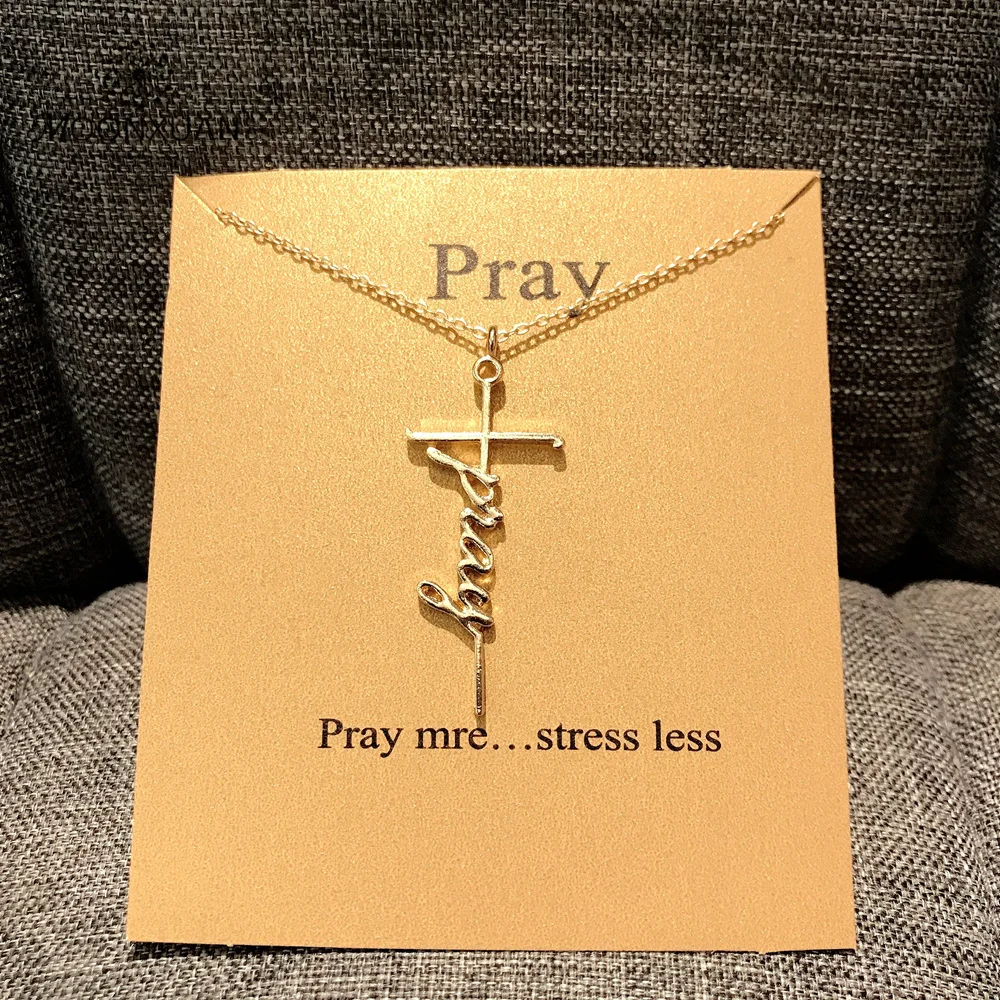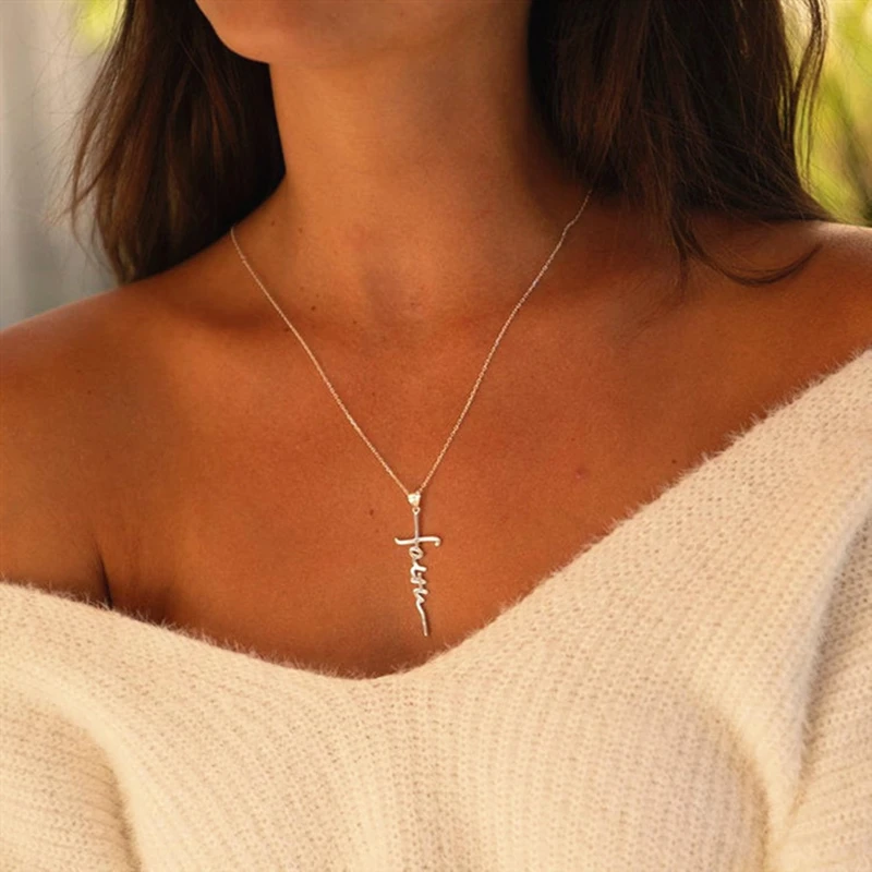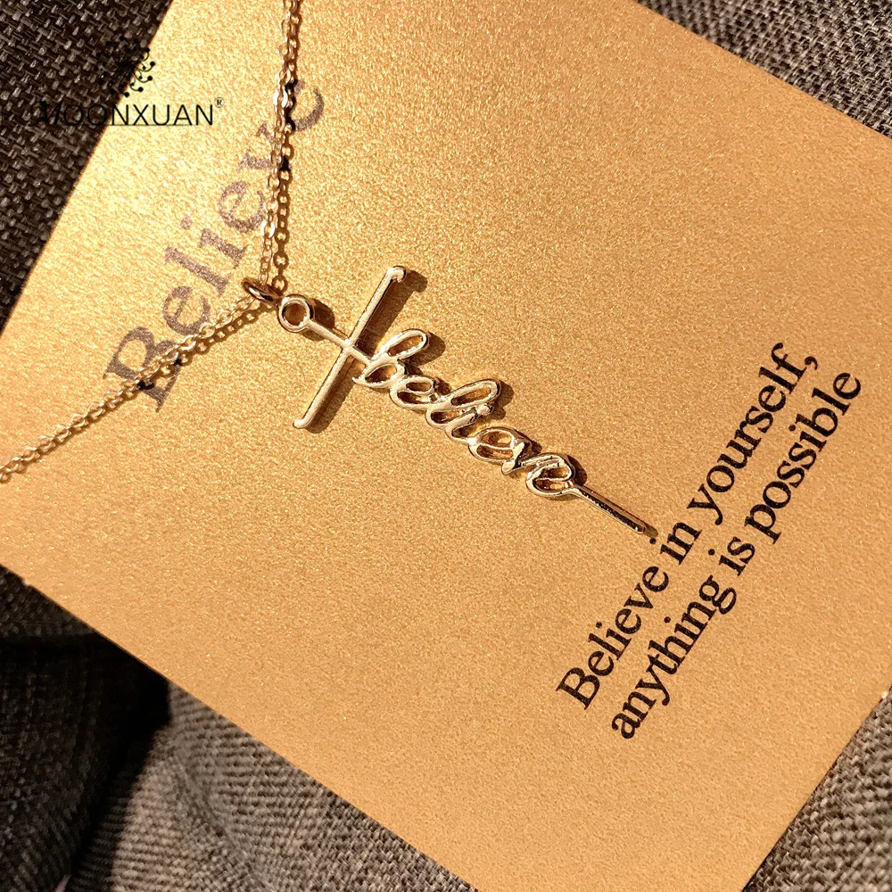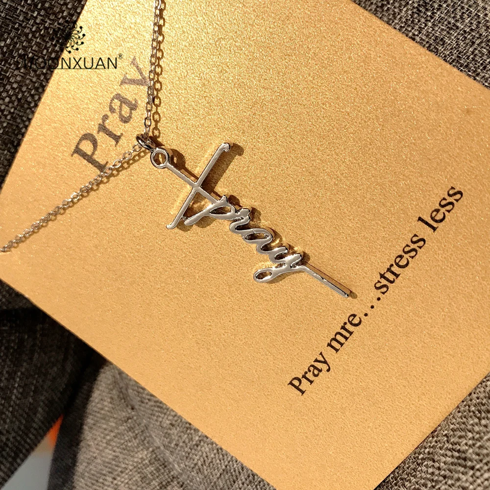MOONXUAN, трендовые, большие кресты, Вера, Вера, молитва, очарование, позолоченное, серебряное, сплав, цепочки, колье, подвеска, ожерелье для женщин