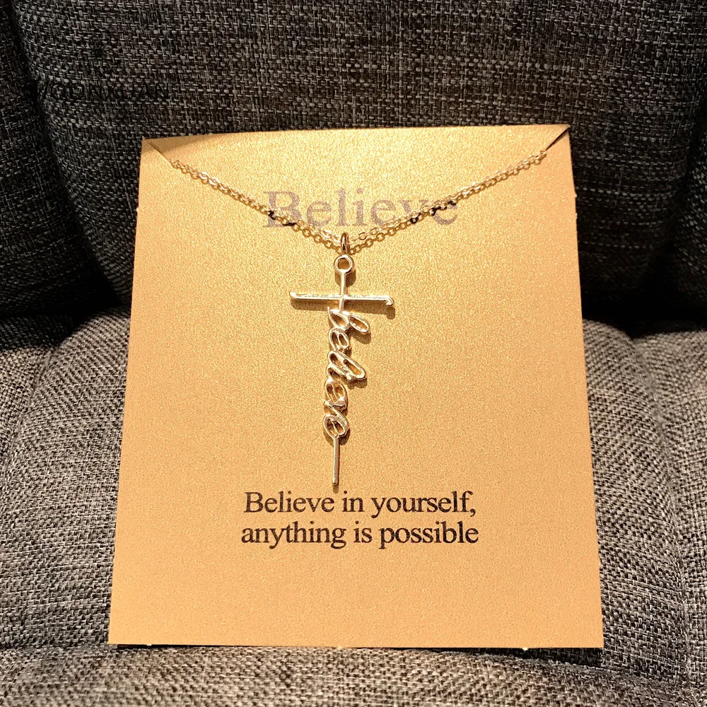 Ожерелье с подвеской в виде золотого Креста, с открыткой желаний, В...
