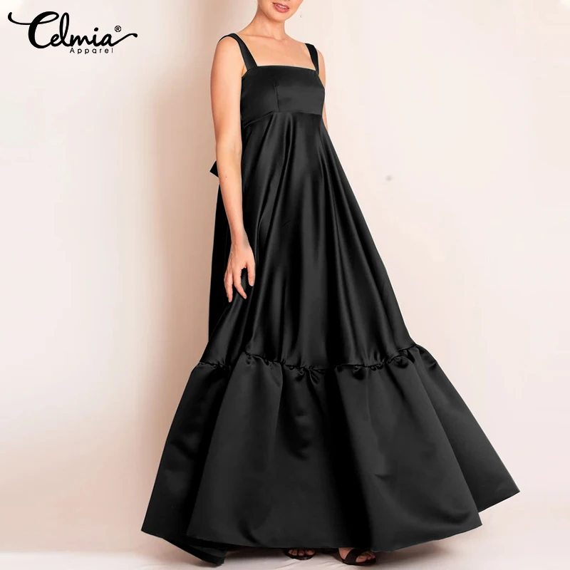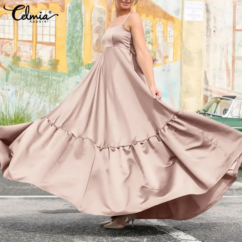 Celmia женское платье-макси летнее атласное шелковое платье на брет...