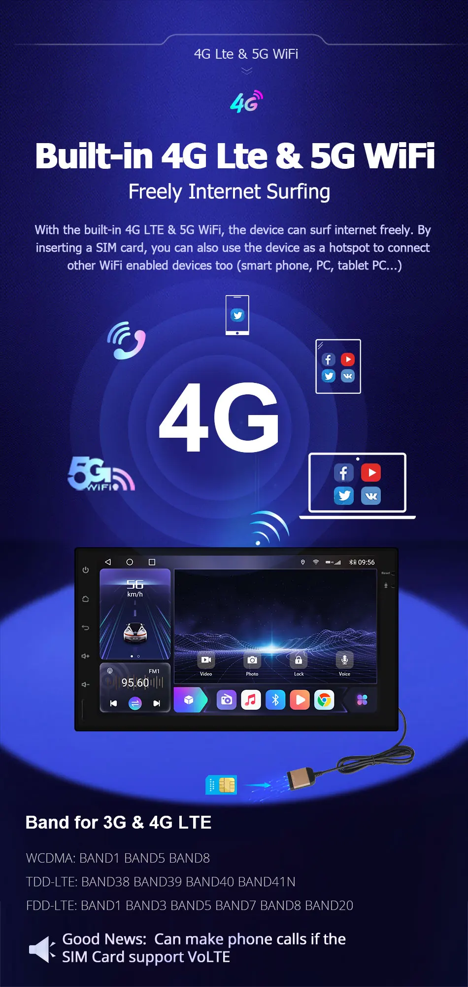 Wireless internetSupport 4G Built-in WiFi