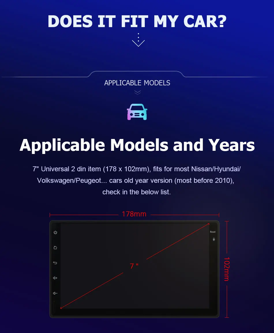 Внимание:Вышеуказанная информация предназначена только для справки, иногда она может быть несовместима с некоторыми автомобилями из-за того, что автомобили производятся в разных странах в разных годовых версиях, спасибо за понимание.
