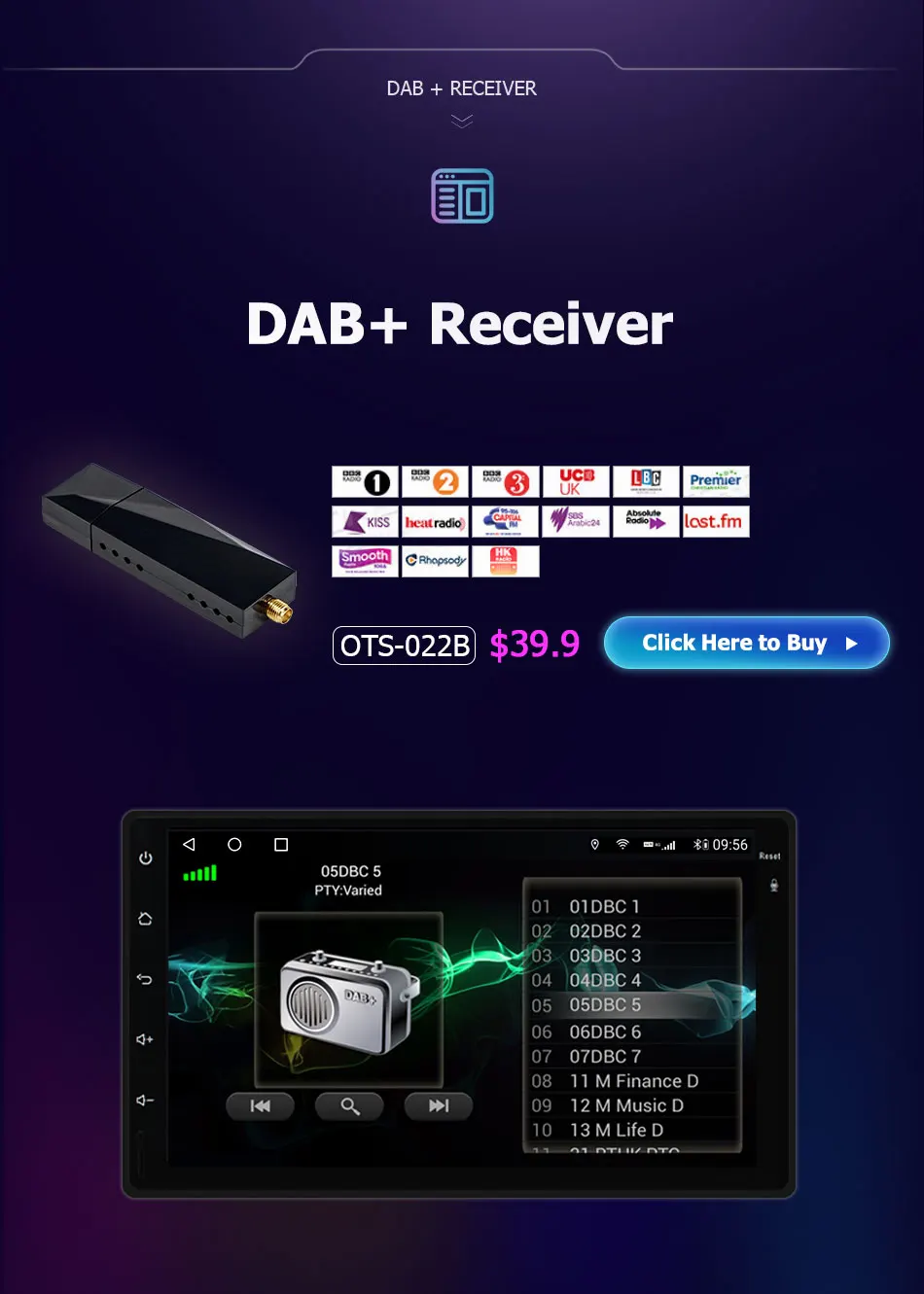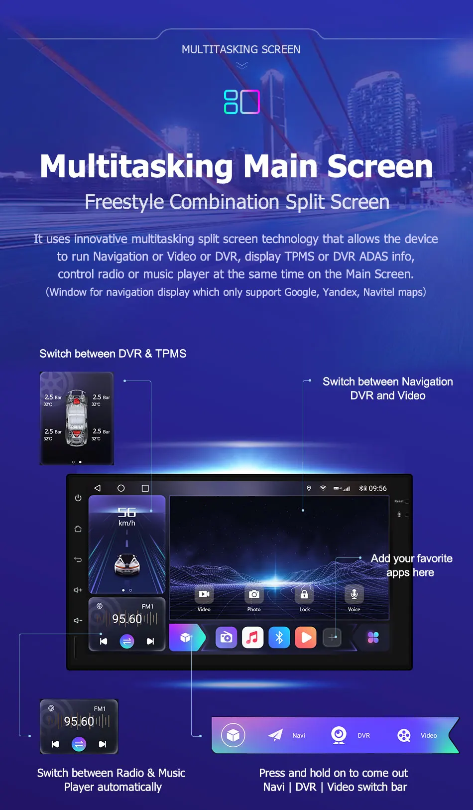 Special FeaturesRadio tuner/Capacitive screen/Bluetooth/TV/Built-in GPS