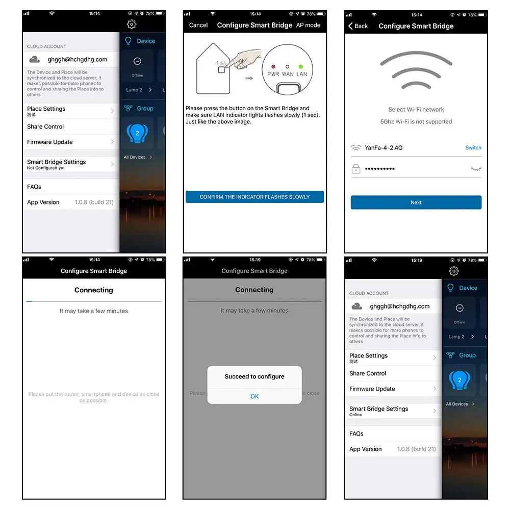 Примечание: При настройке Smart Bridge он работает с сетью 2.4GWi-Fi (сеть Wi-Fi 5G Гц не поддерживается)