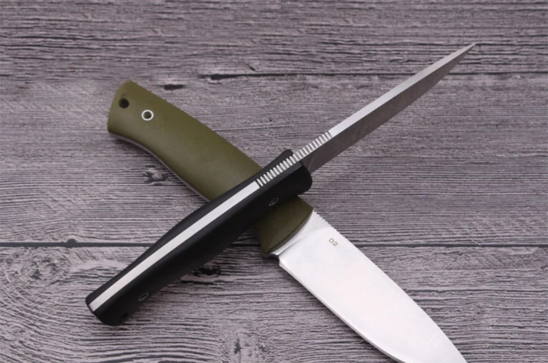 Острый нож с фиксированным лезвием D2, тактический нож, охотничьи ножи для выживания, рукоятка G10 с кожаными зажимами, инструмент для кемпинга на открытом воздухе