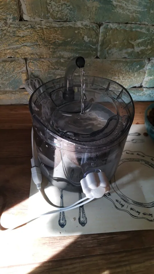 Емкость 2л Не нужно часто пополнять воду, и она может удовлетворить питьевые потребности кошек, собак, птиц и других домашних животных различных размеров. Не нужно беспокоиться о том, что ваши питомцы не получают достаточно свежего напитка, когда вы идете на работу.
