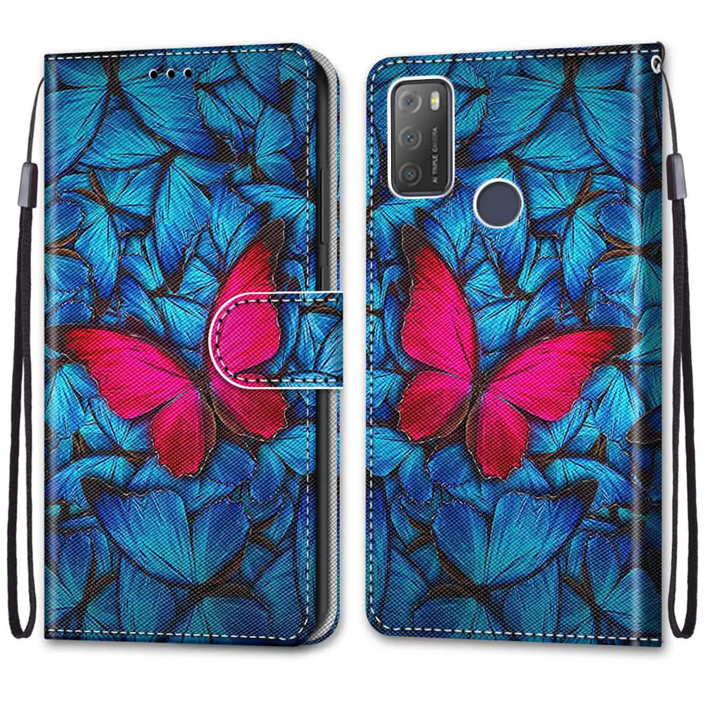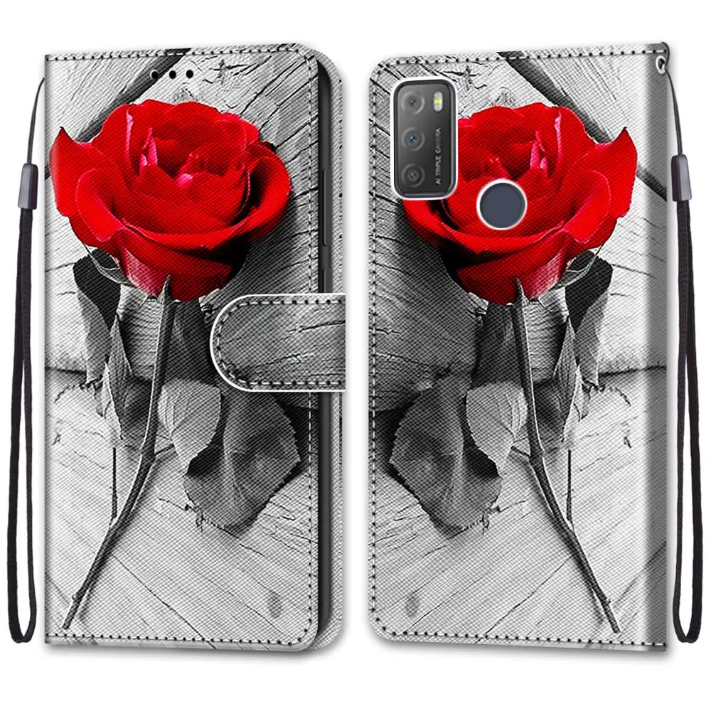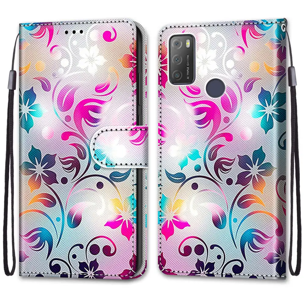 PU кожаный чехол для Alcatel Работает с любым оператором, 1S 3L 1SE 2020 флип чехол-книжка с кошельком Стиль милые цветы Аниме Чехол-обложка чехол для Alcatel Работает с любым оператором, 3L 2021 чехол для телефона
