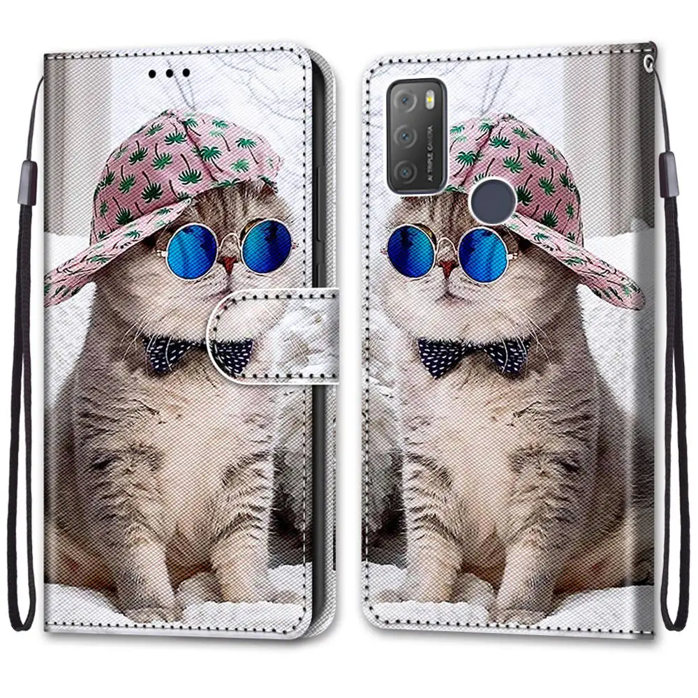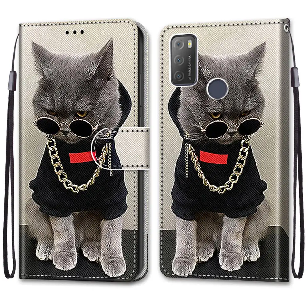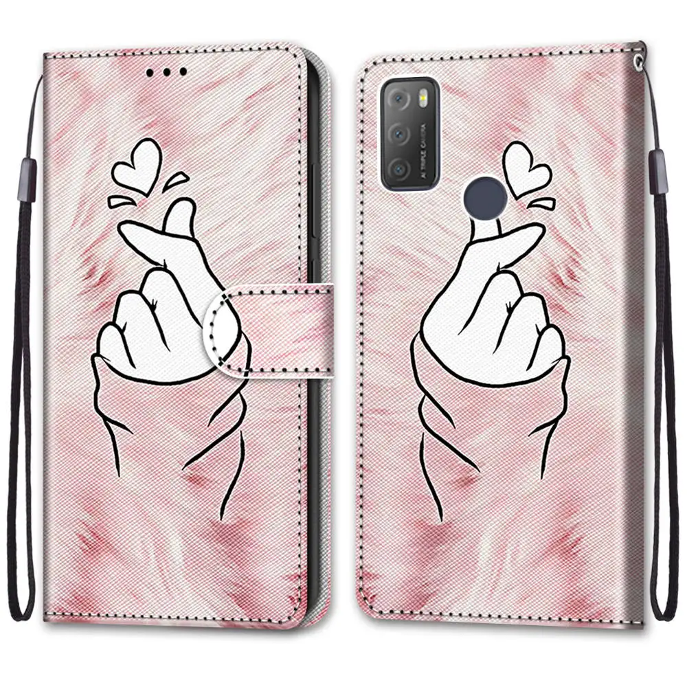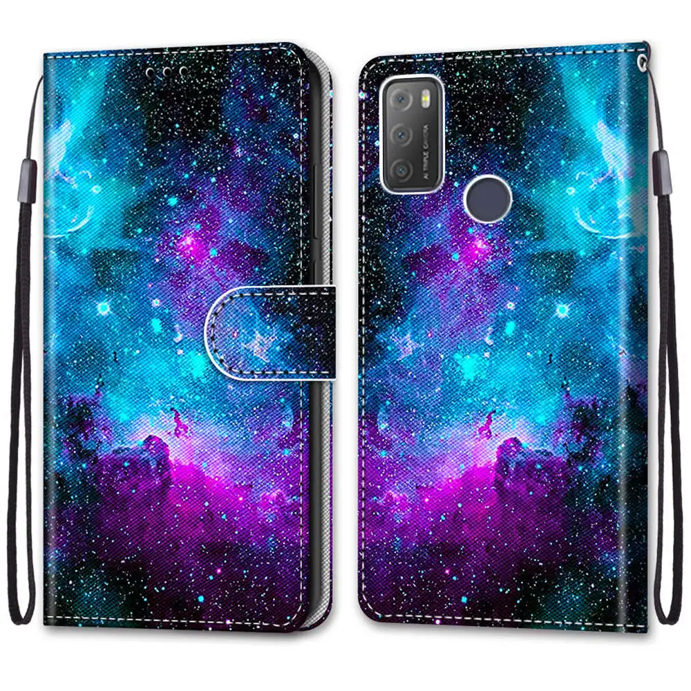 PU кожаный чехол для Alcatel Работает с любым оператором, 1S 3L 1SE 2020 флип чехол-книжка с кошельком Стиль милые цветы Аниме Чехол-обложка чехол для Alcatel Работает с любым оператором, 3L 2021 чехол для телефона