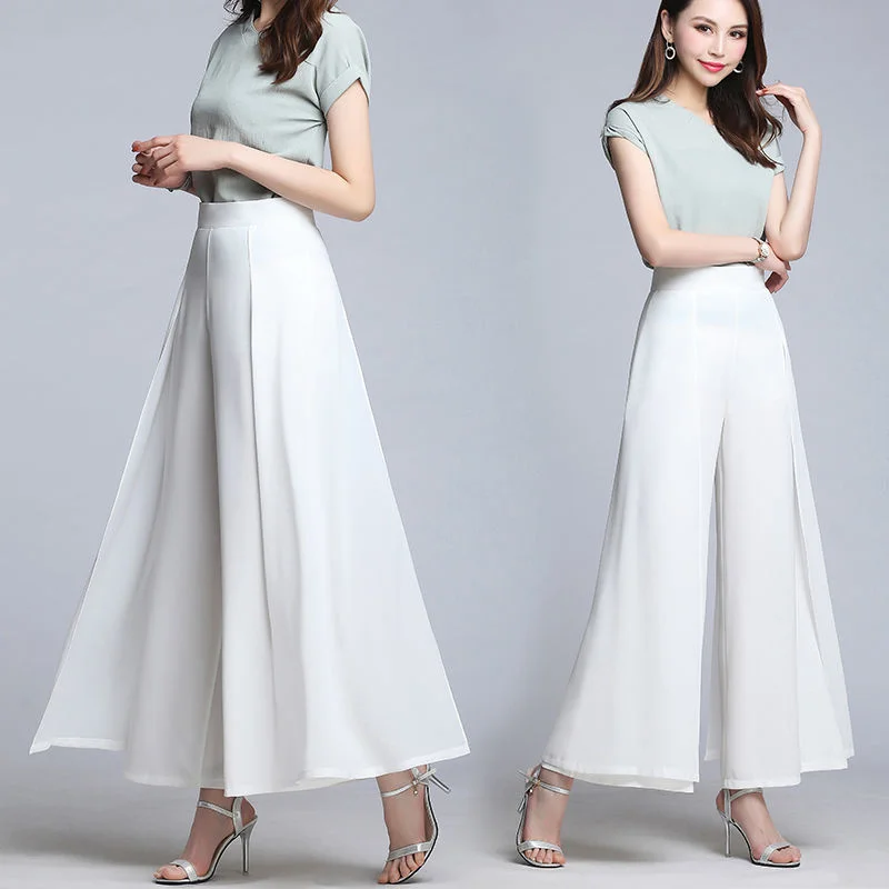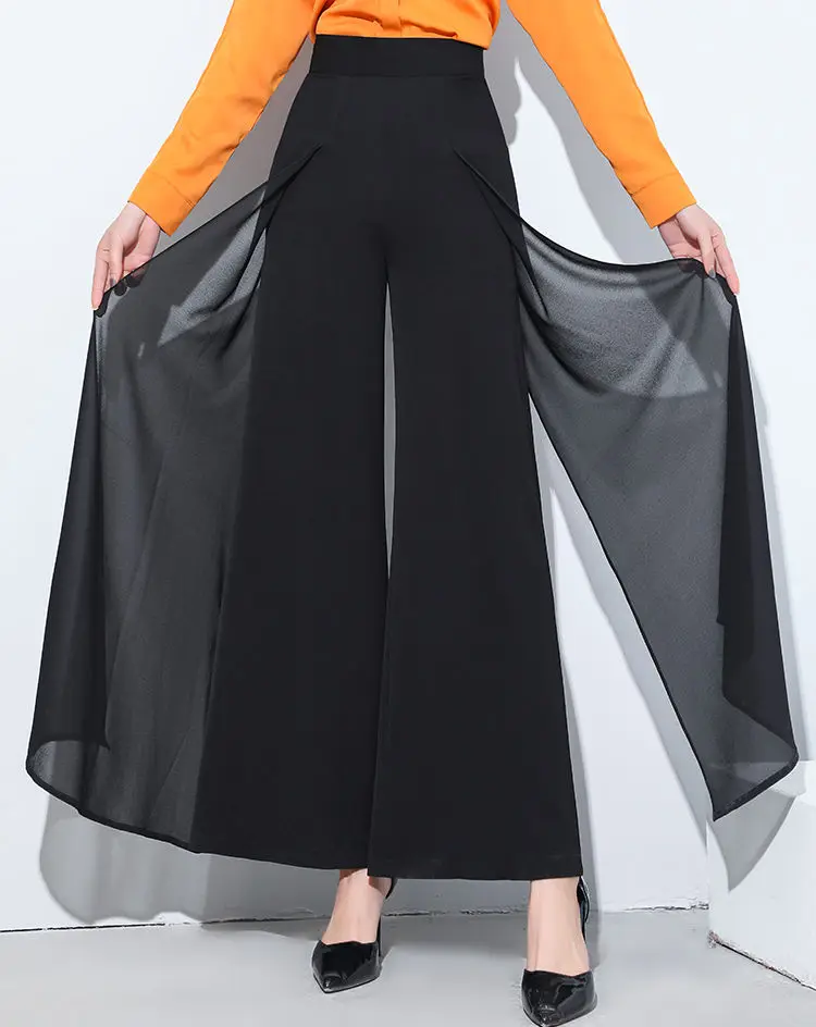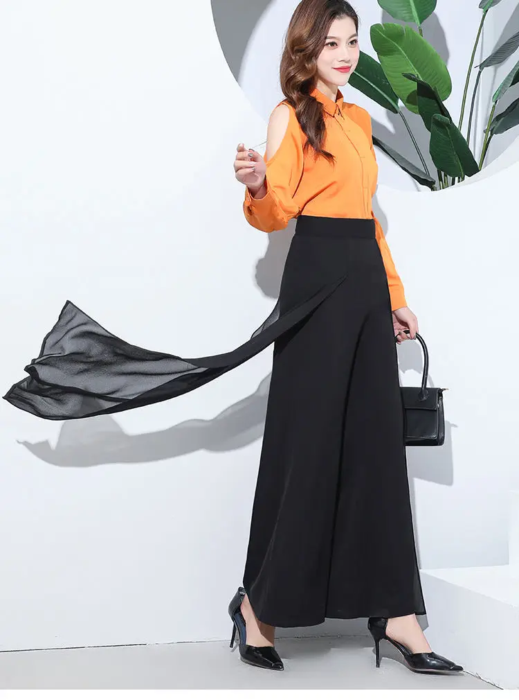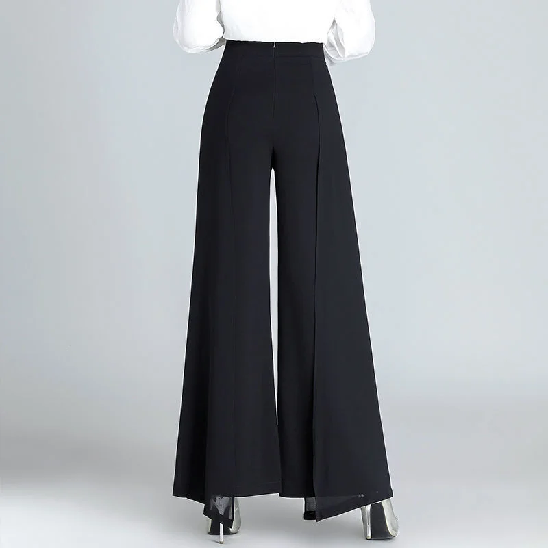 Женские шифоновые брюки с широкими штанинами, повседневные черные элегантные брюки с высокой талией, модная одежда в Корейском стиле, новинка 2022, мешковатые брюки для женщин