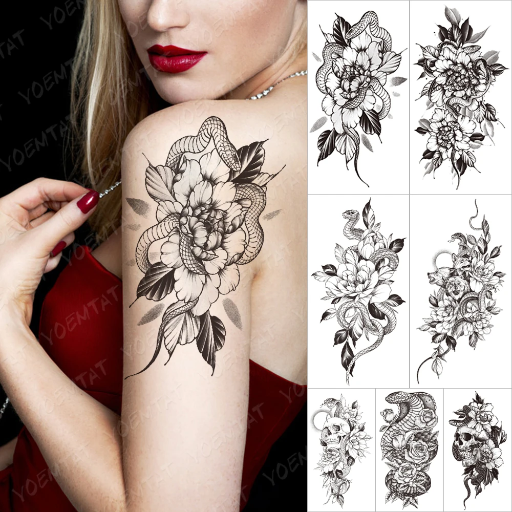 Переводные водонепроницаемые временные тату-наклейки, Орхидея, змея, ветер, яростная простота, тату, талия, боди-арт, искусственная тату для мужчин и женщин
