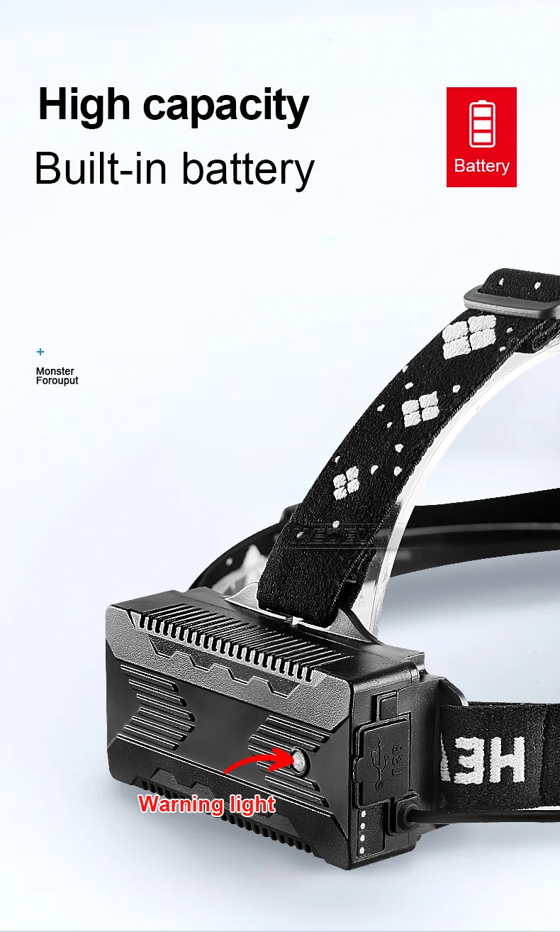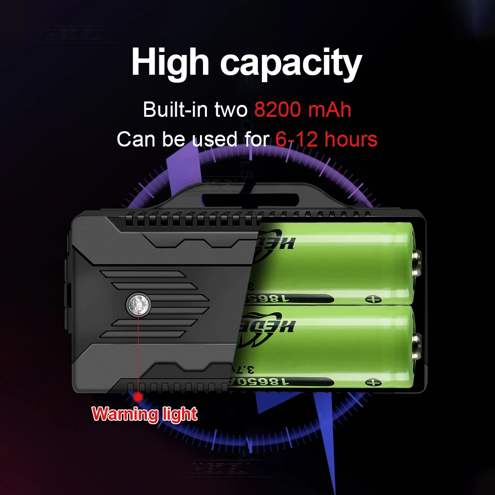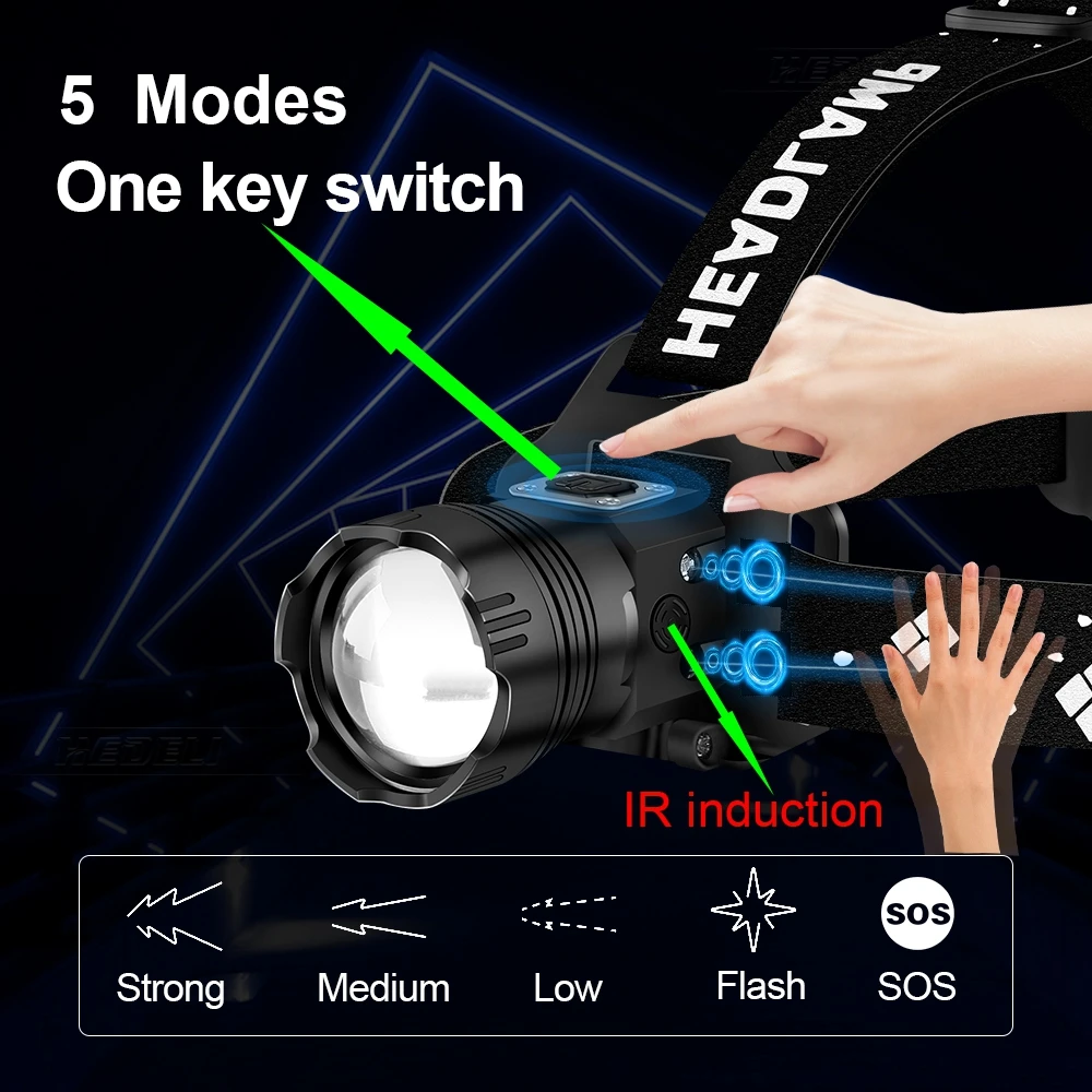 ♢Любая функция датчика шестерни, вы можете контролировать яркость с волной вашей руки.♢Новая обновленная версия сверхвысокой яркости сопоставима с автомобильными фарами, телескопическим зумом прожектора, может достигать широкого диапазона, длинного фокусного расстояния, видения.♢8200 мАч литиевая батарея, встроенный аккумулятор 18650*2, супер срок службы батареи для долгосрочного использования!♢90 градусов можно регулировать свободно, зум гибкий, светильник широкий диапазон, и светильник более концентрирован.♢Диапазон может достигать 800-1600 метров.♢Легкий дизайн, без давления на голову, без давления, чтобы носить весь день.♢Многофункциональная USB быстрая зарядка, безопасная, стабильная и эффективная.♢Он имеет функцию мобильного источника питания, который может заряжать мобильный телефон, отображать мощность в режиме реального времени и имеет две функции в одном устройстве.♢Уровень водонепроницаемости может достигать 8 уровней, которые могут легко справиться с суровой внешней средой ночью.