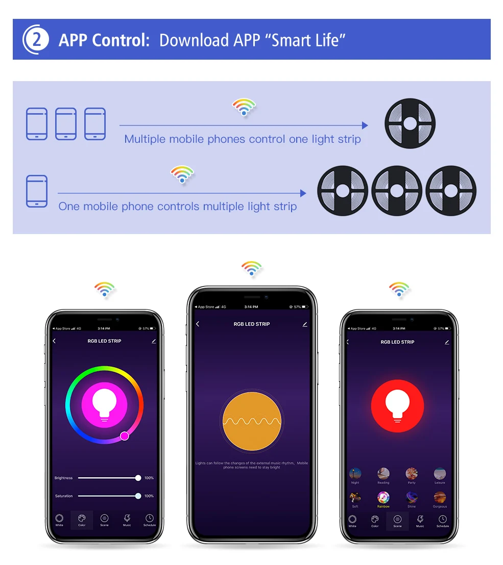 Умная Светодиодная лента с управлением через приложение и голосовым управлением