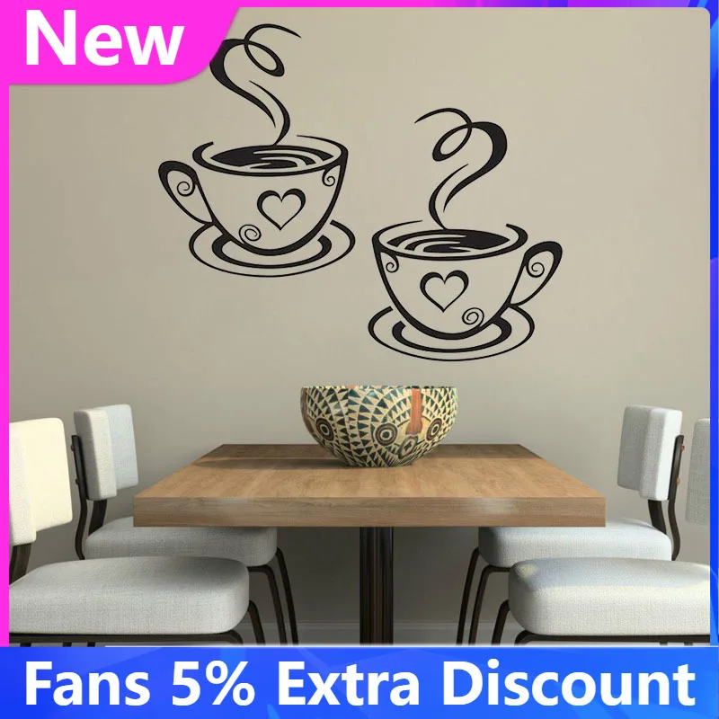 Новая двойная наклейка кофейные чашки, настенные из ПВХ виниловые х...