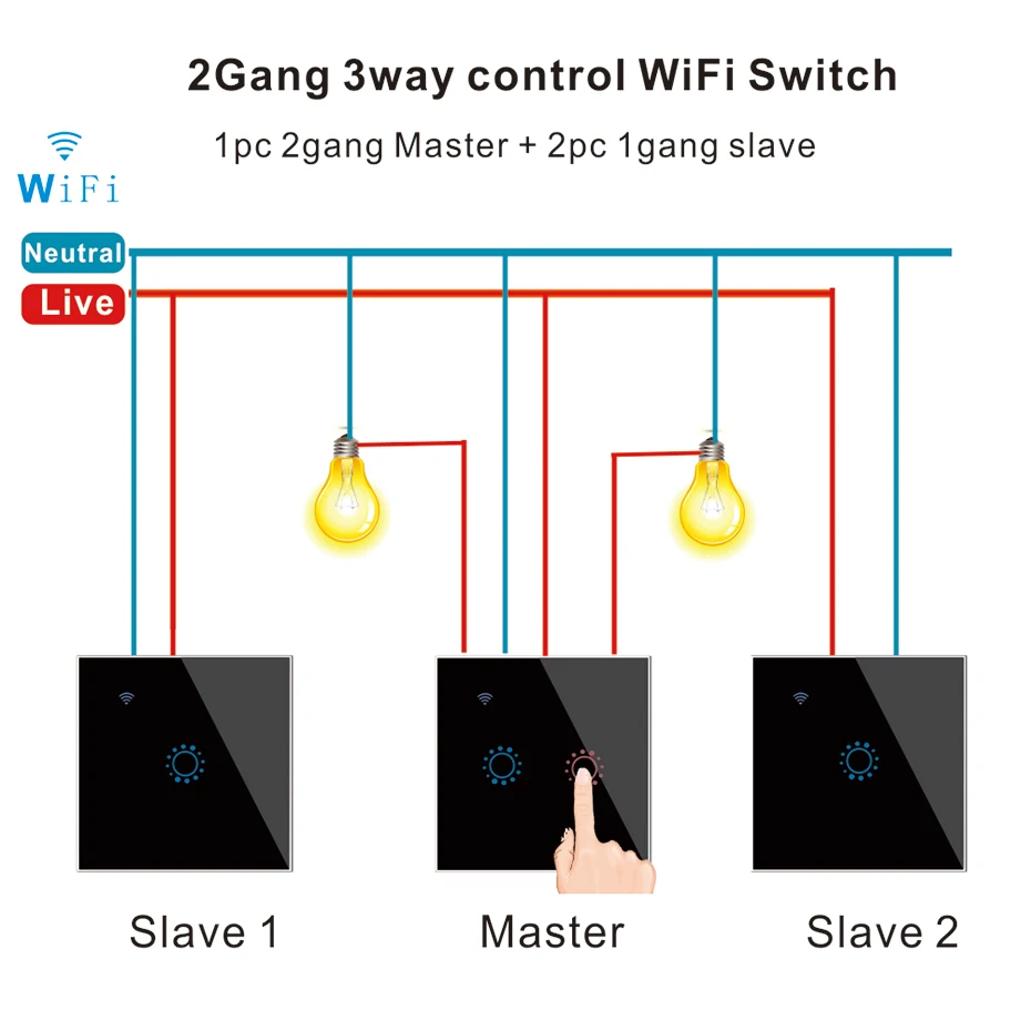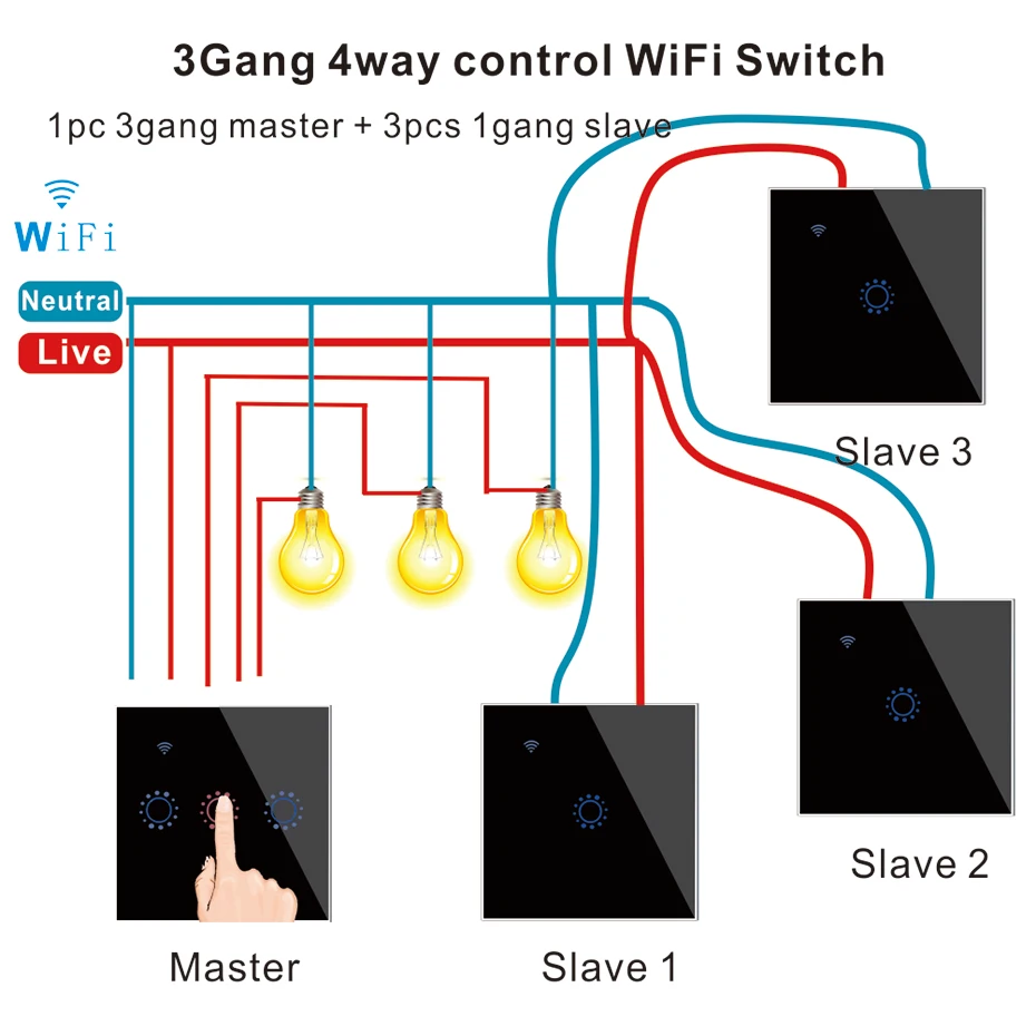 Примечание: Переключатель A может использоваться как переключатель независимости, но переключатель B не может работать независимо При настройке пары приложений, пожалуйста, используйте только переключатель A в соответствии с инструкцией пользователя. Отключите питание при установке и без установки! Pair Switch A и Switch B (Все переключатели были сопряжены на заводе, если покупатель обнаружит, что они не были сопряжены, сделайте шаг ниже) 1. Нажмите и удерживайте кнопку переключения, пока красный светодиодный индикатор не появится на значке сигнала wifi 2. Затем нажмите кнопку переключения B, чтобы отправить сигнал, красный светодиодный индикатор должен исчезнуть после достижения успеха 3. Сделайте шаг один за одной парой каждой банды.